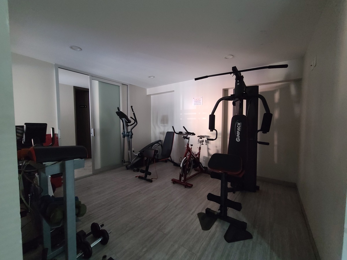 Vive en un condominio con seguridad 24 horas, gimnasio, salón de eventos, elevador, y planta de luz.