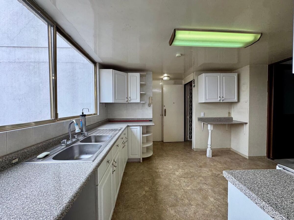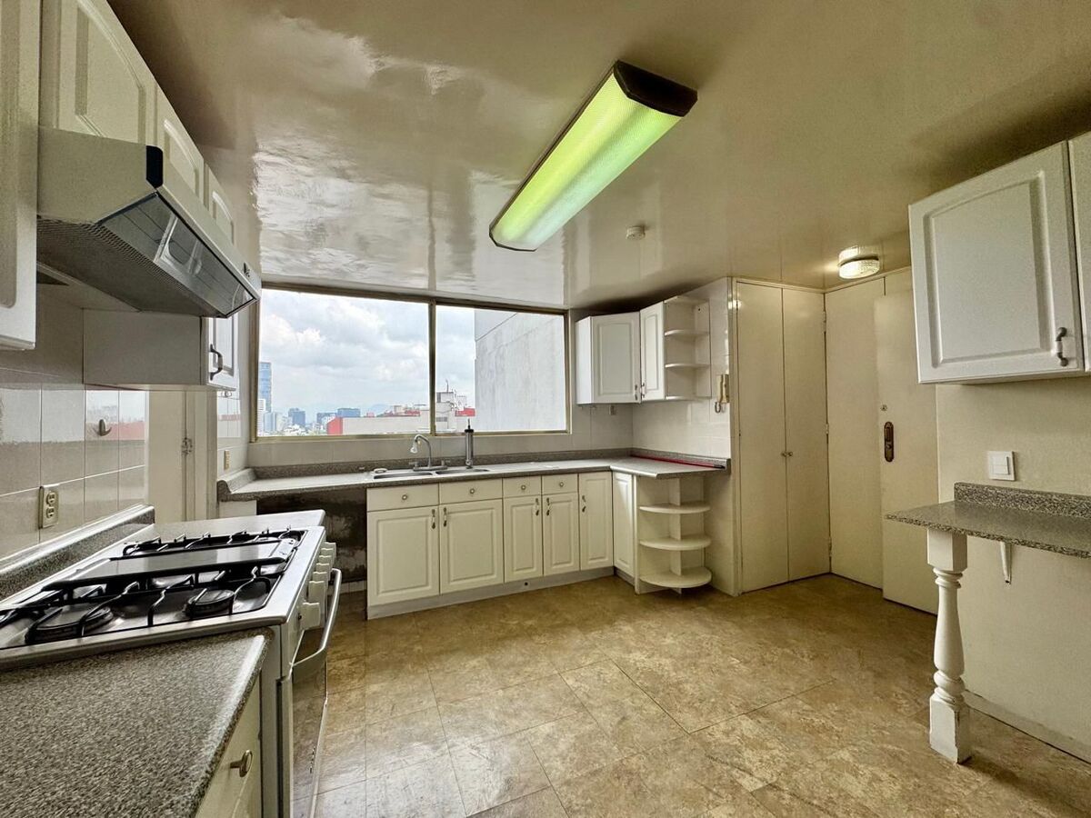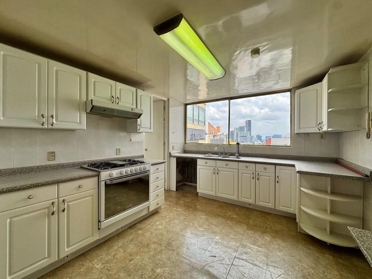 El área social se complementa con un family room con acceso a la terraza, antecomedor y una cocina cerrada con entrada independiente desde el elevador de servicio.