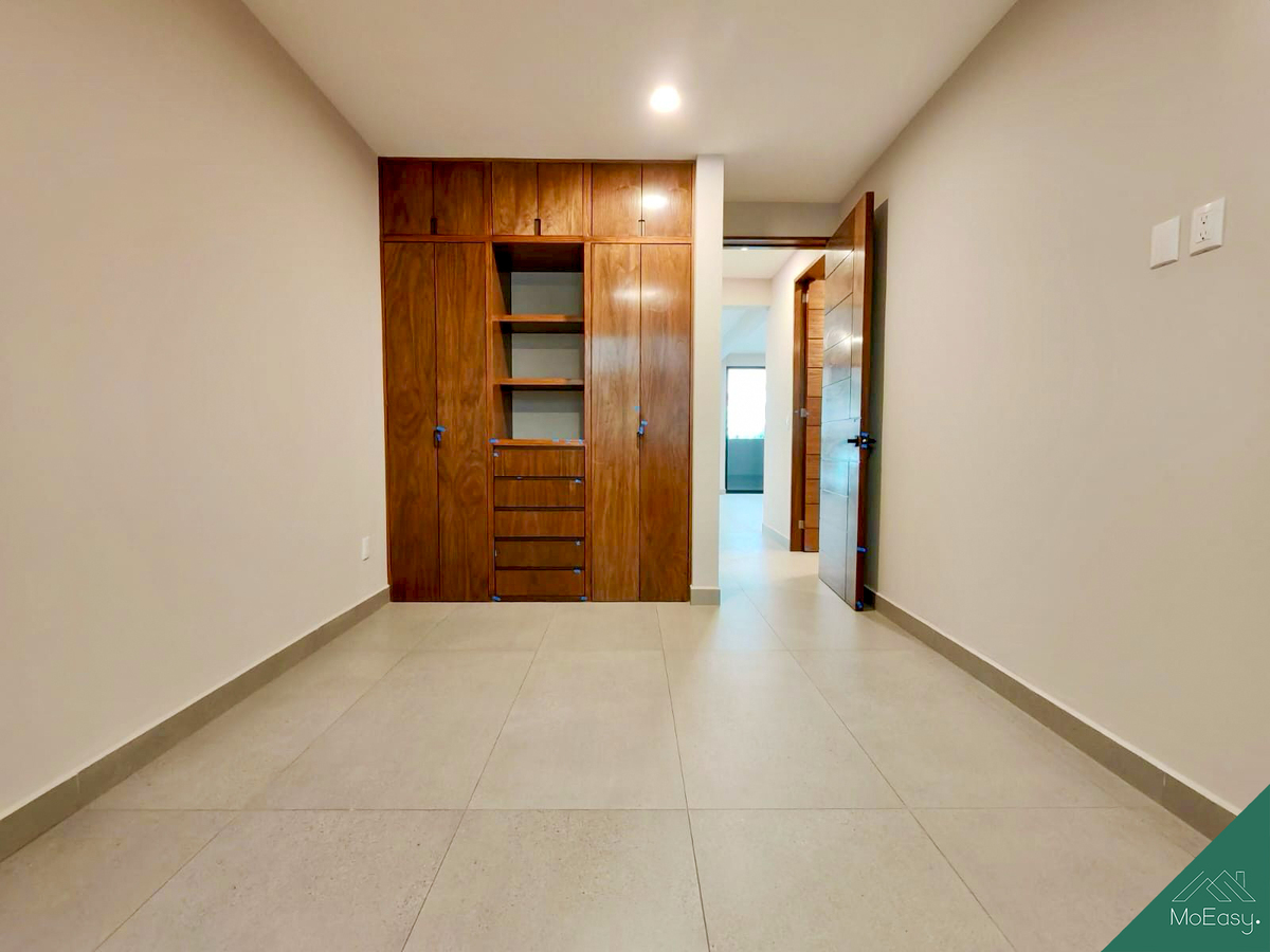 Cuenta con una moderna distribución, sala-comedor con excelente iluminación natural, cocina integral equipada, recámaras con clósets amplios, dos baños completos y dos lugares de estacionamiento.