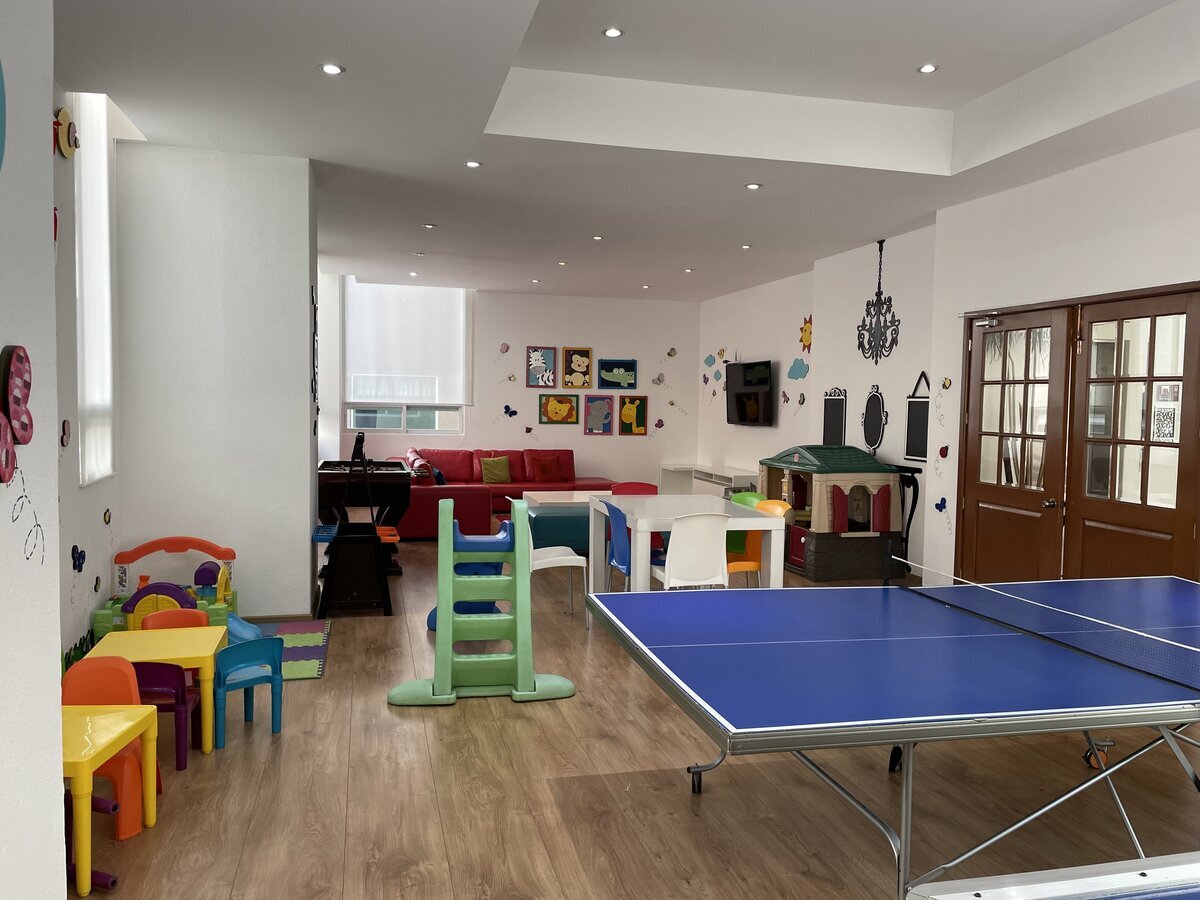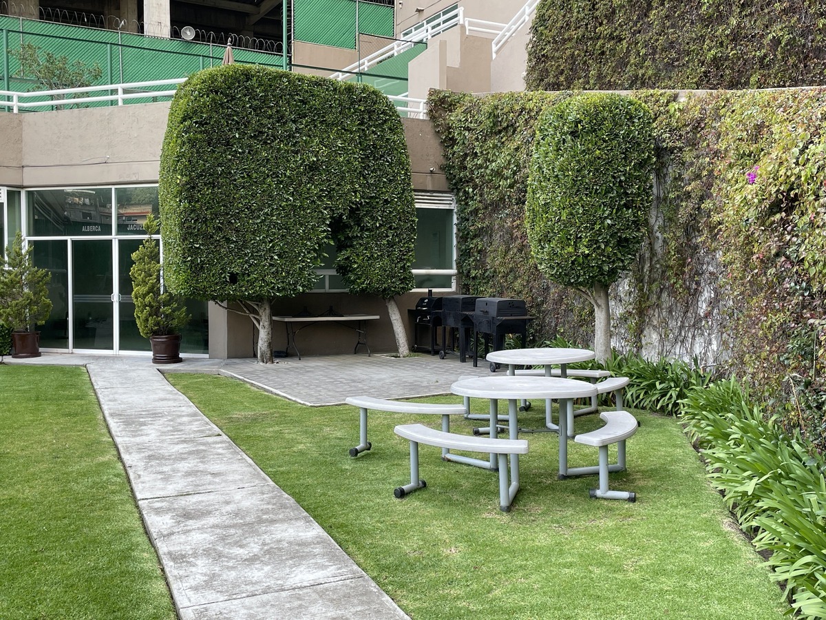 ROOF GARDEN CON VISTA AL SUR, ESTE INMUEBLE CUENTA CON SERVICIO DE VIGILANCIA LAS 24 HRS DEL DIA, CON CAMARAS DE CIRCUITO CERRADO, DOS ELEVADORES, PRINCIPAL Y SERVICIO. CUENTA CON UN SALON PARA EVENTOS DE USOS MÚLTIPLES, ZONA DE JUEGOS PARA NIÑOS, UN JARDÍN PET FRIENDLY GARDEN, BILLAR Y MESAS DE JUEGO PARA ADULTO, GYM, ALBERCA LUDOTECA, VAPOR ZONA PARA CARNES ASADAS.