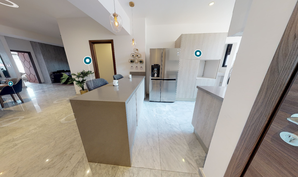 Mármoles Carrara en pisos de Areas sociales, Madera de Ingeniería en Recamaras, Baños en Mármol, Muebles Castel, Cocinas Italianas de Tua casa, Cubiertas de Cuarzo.