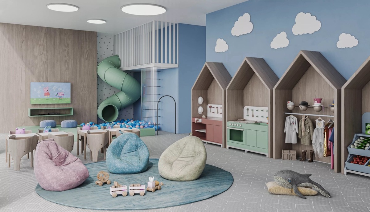 Bosque e Amenidades: Dispõe de mais de 10.000 m² de bosque privado com amenidades como cinema ao ar livre, parede de escalada, pista de jogging, parquinho infantil e parque para cães. Assim como piscina, spa com jacuzzi, sauna, espaço de co-working, biblioteca infantil, salão de adultos, salão de jovens, academia e área de spinning.