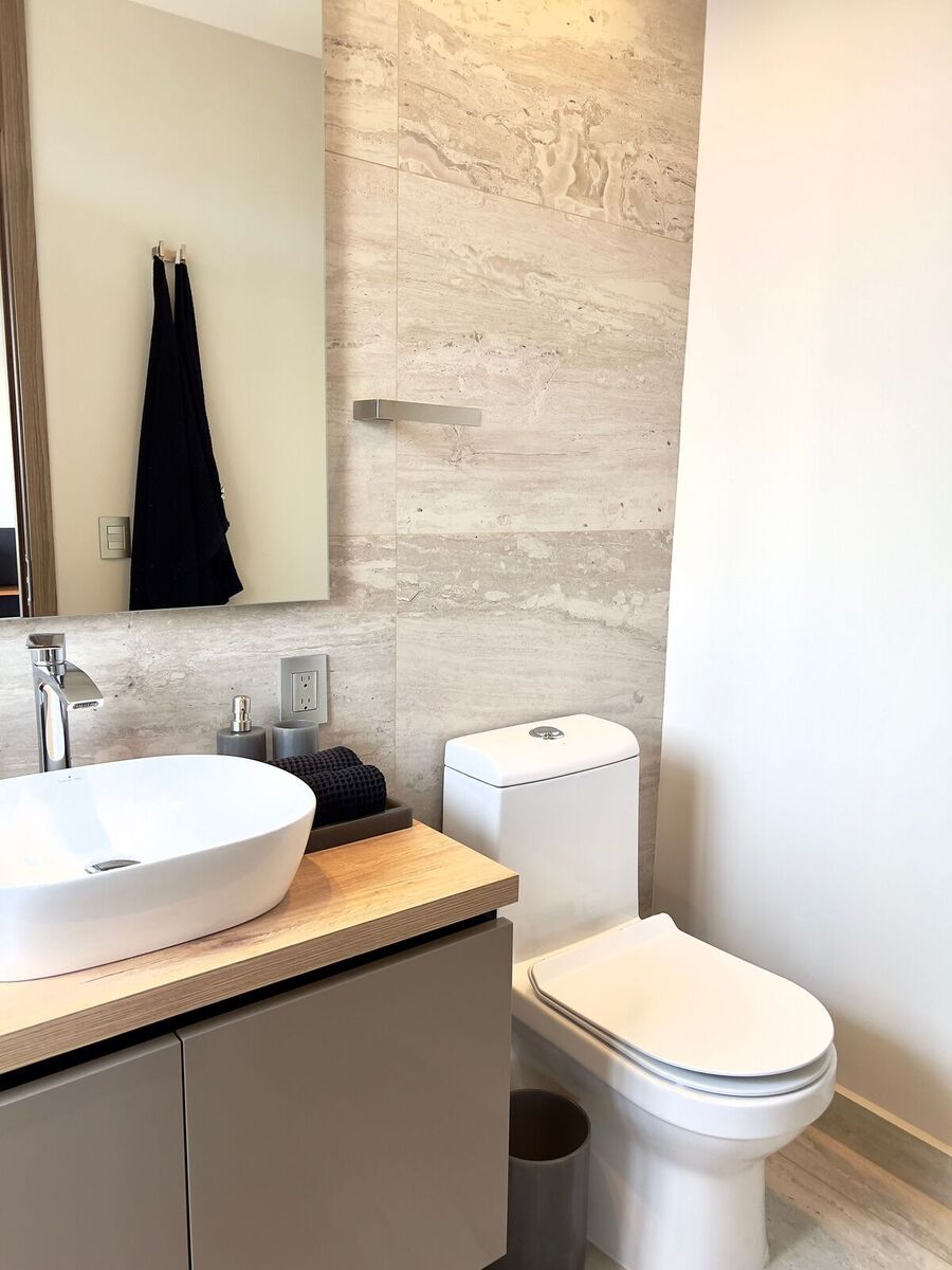 El departamento se entrega en obra blanca, falta poner pisos y luminarias.