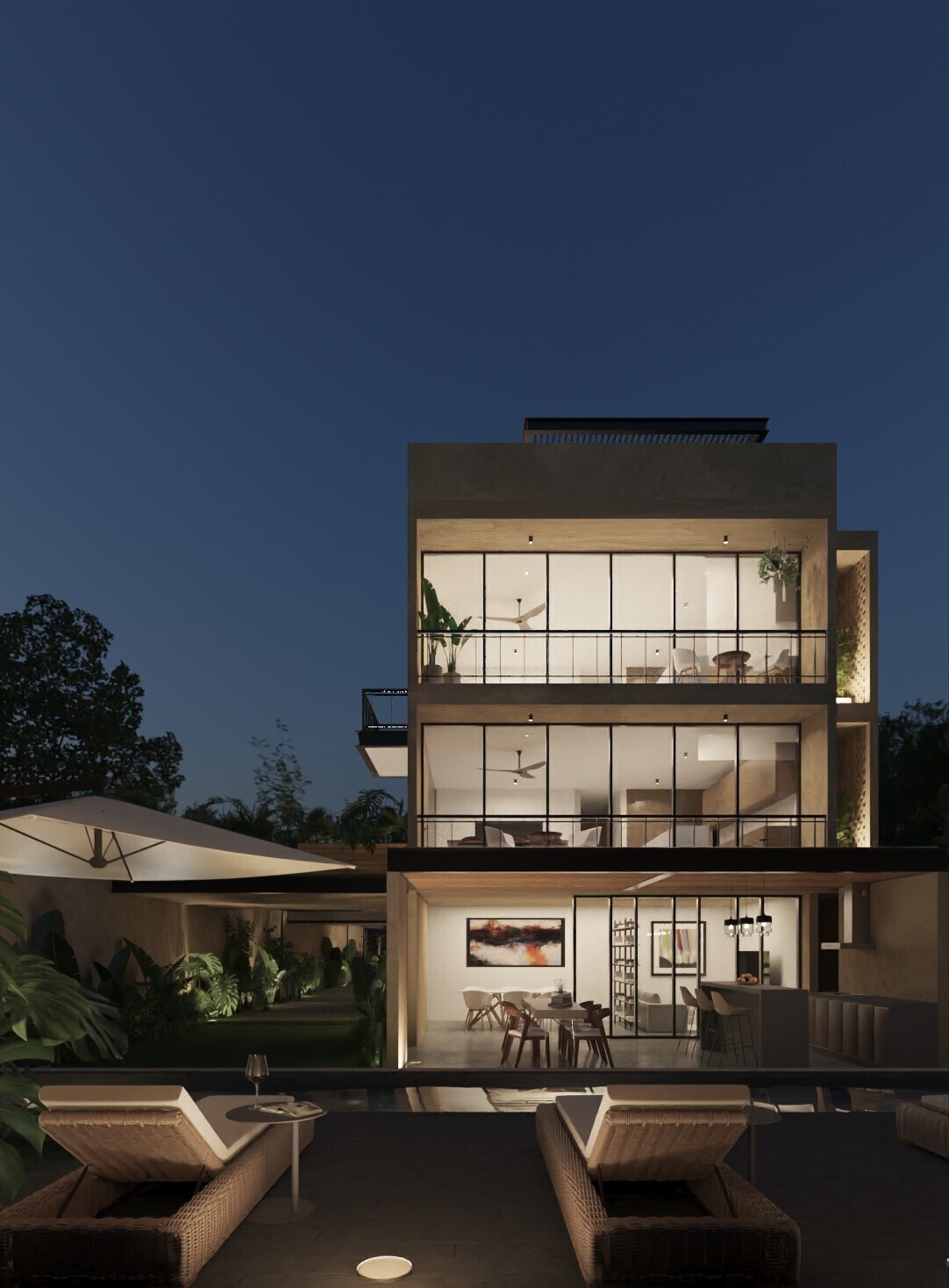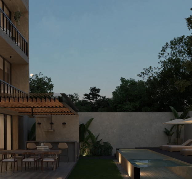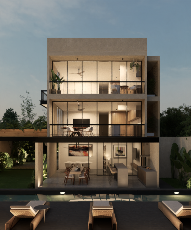 * Este é um render que pode variar em relação ao resultado real.*El "Conjunto departamental KA’AX" es un desarrollo residencial que consta de un total de 9 departamentos distribuidos en cuatro niveles, ubicado en la zona privilegiada de Temozón Norte.
