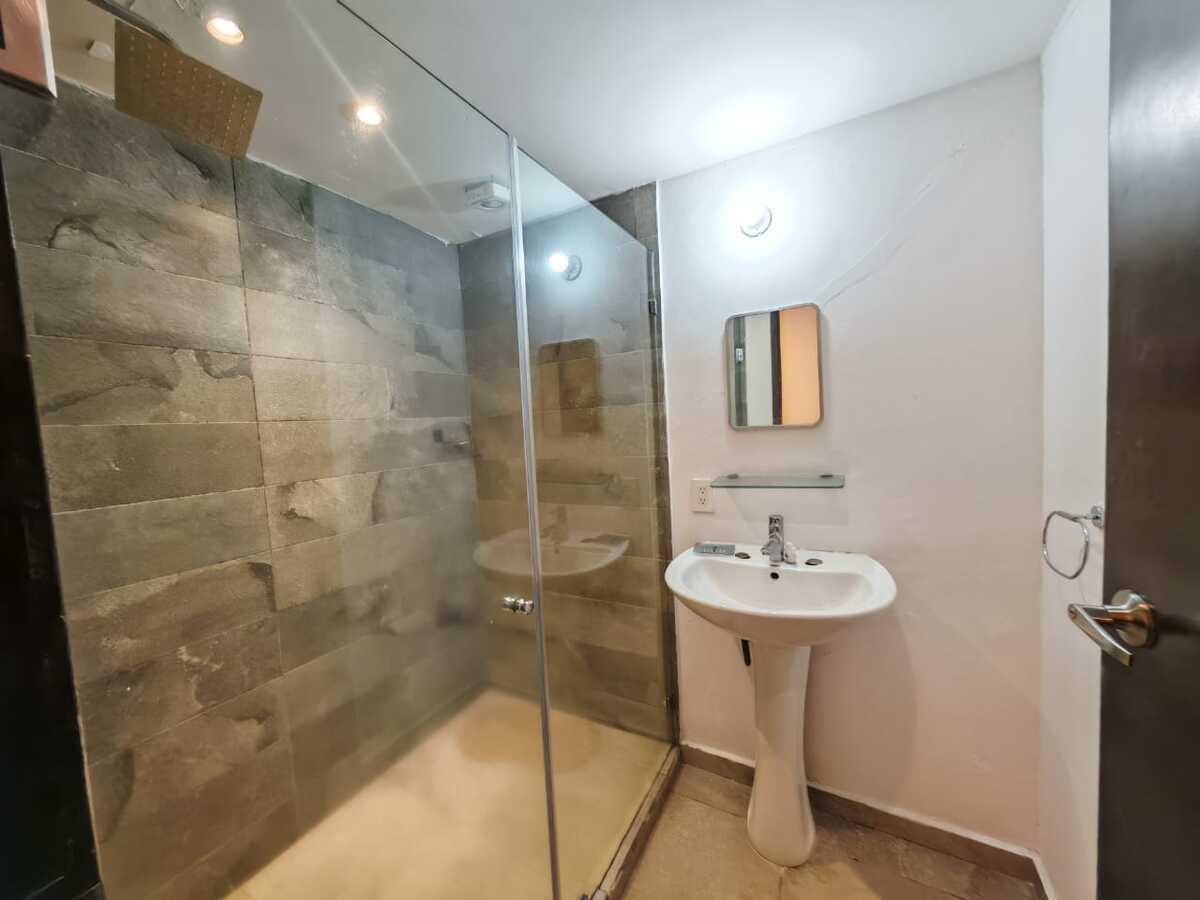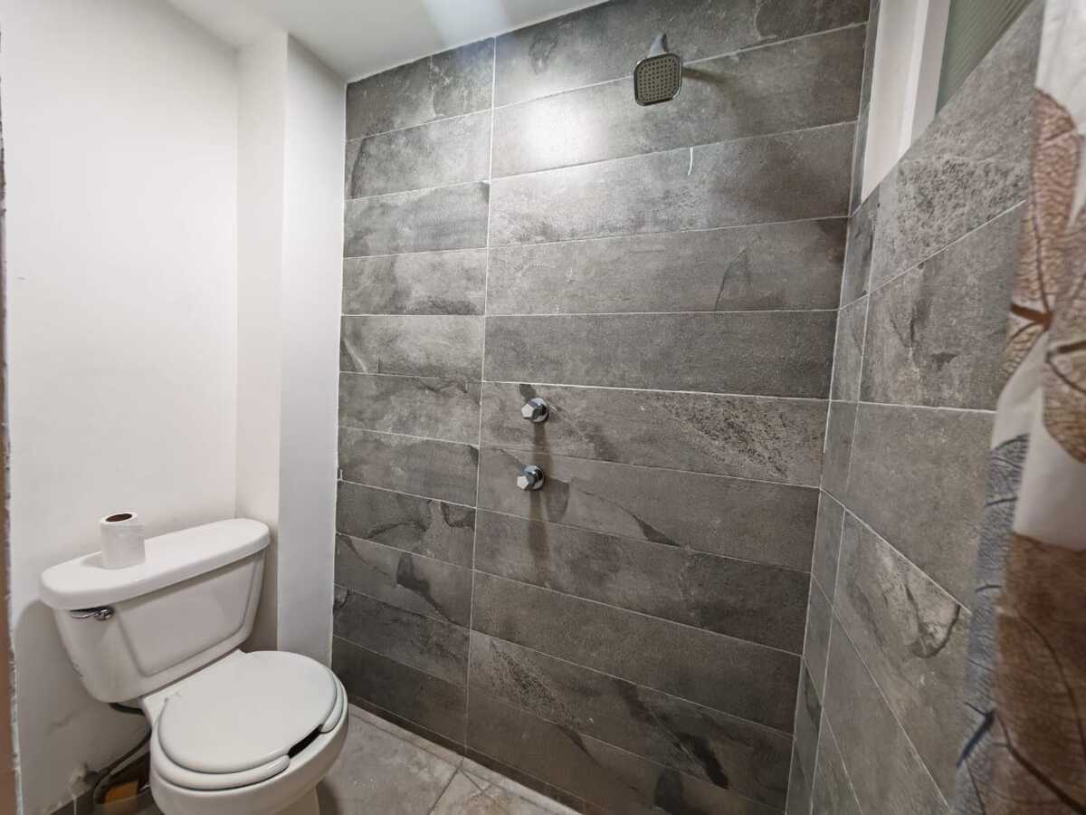 Baño completo adicional que da servicio al área social y a las habitaciones secundarias.