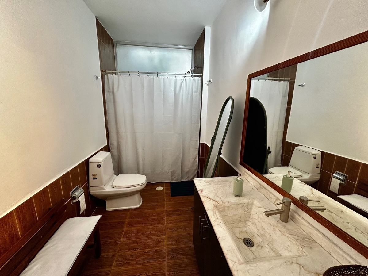 Tiene 3 recámaras también con piso de madera de encino y un baño completo. El baño de servicio podría ser el segundo baño.