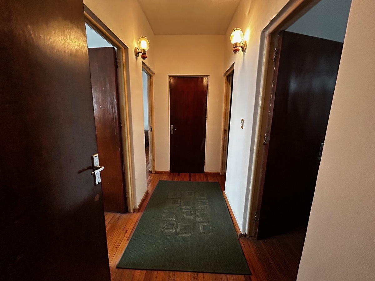 Tem 3 quartos também com piso de madeira de carvalho e um banheiro completo. O banheiro de serviço poderia ser o segundo banheiro.