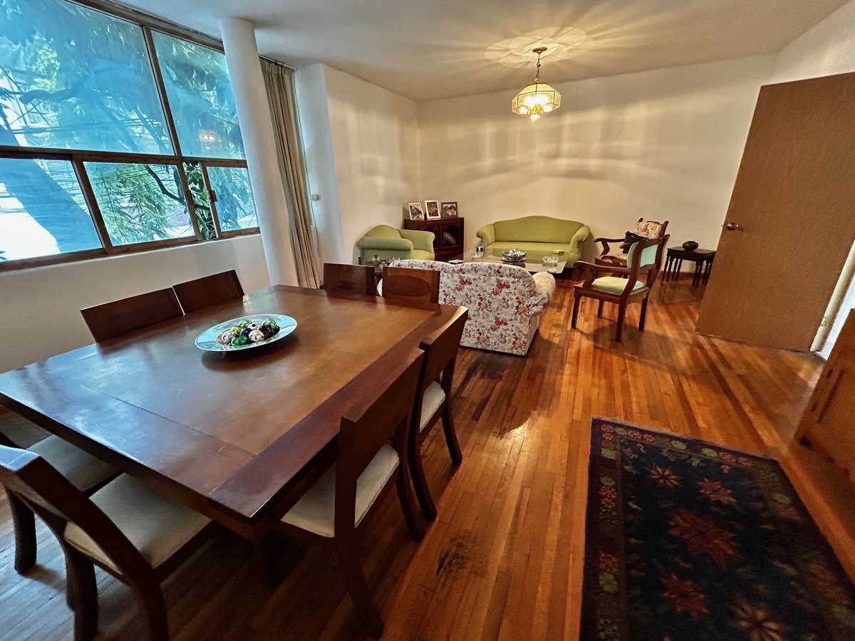 No tiene estacionamiento pero está muy bien ubicado, a media cuadra de insurgentes y también la delegación te da un permiso para estacionarte en la calle sin costo, ya que es zona de parquímetros.