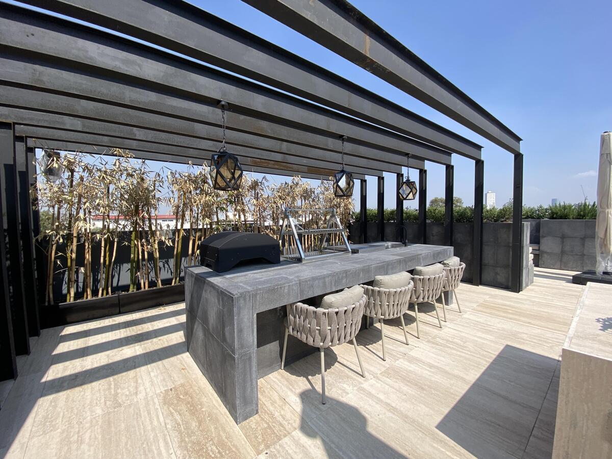 • Jardim na cobertura comum equipado com churrasqueiras e mobiliário