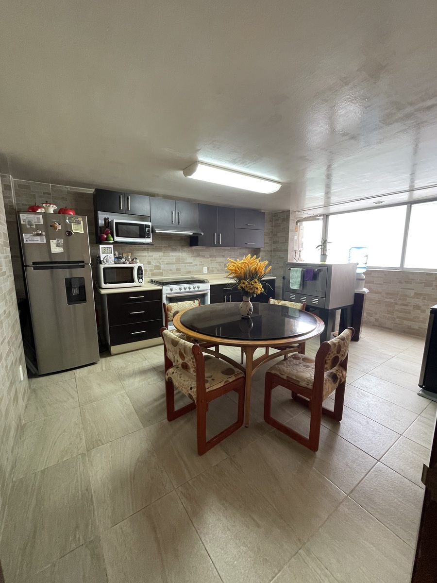 Amplio departamento en Lindavista norte en tercer nivel, de 213 metros, distribuido en en 2 niveles, en la planta baja se encuentra el área social la sala con techos a doble altura y ventanales de piso a piso con balcón muy iluminado, comedor, cocina con desayunador, alacena, y área de servicio, también cuenta con medio baño para visitas, en planta alta esta un family room y 3 recámaras con closet, la principal con baño completo y la otras 2 recámaras comparten un baño completo.