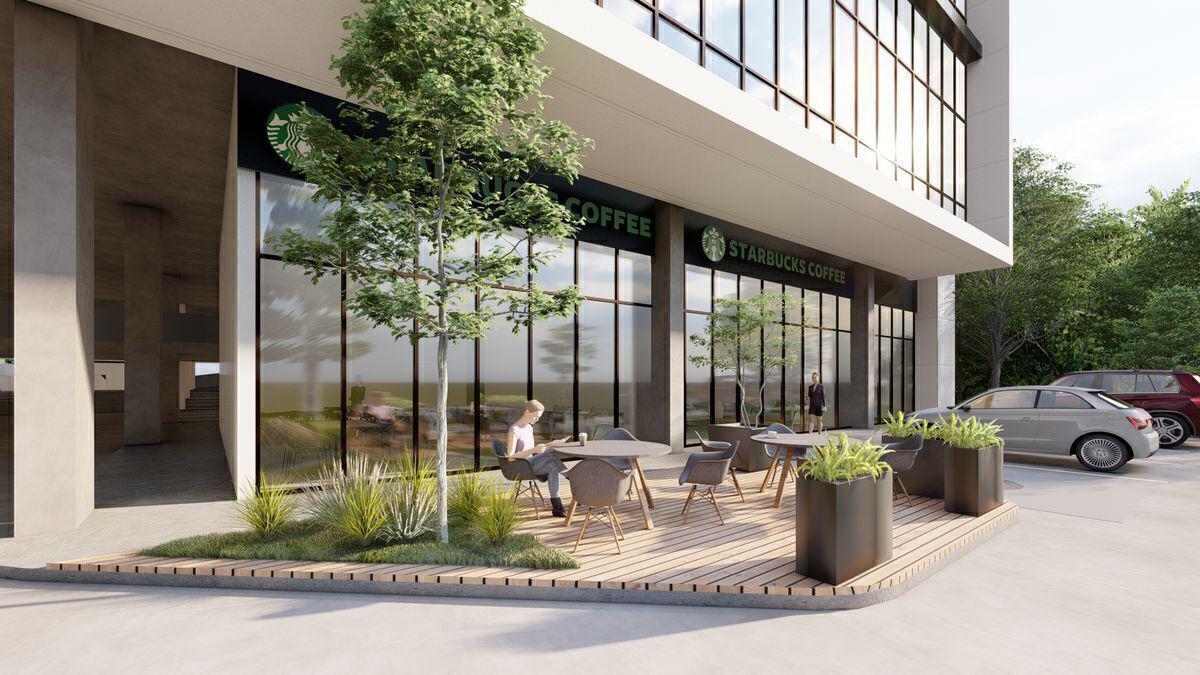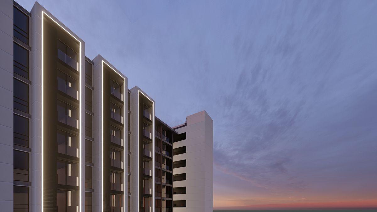 -El proyecto consta de dos bloques arquitectónicos, divididos en una área de comercio junto con otra de oficinas, y la segunda parte en los departamentos residenciales.