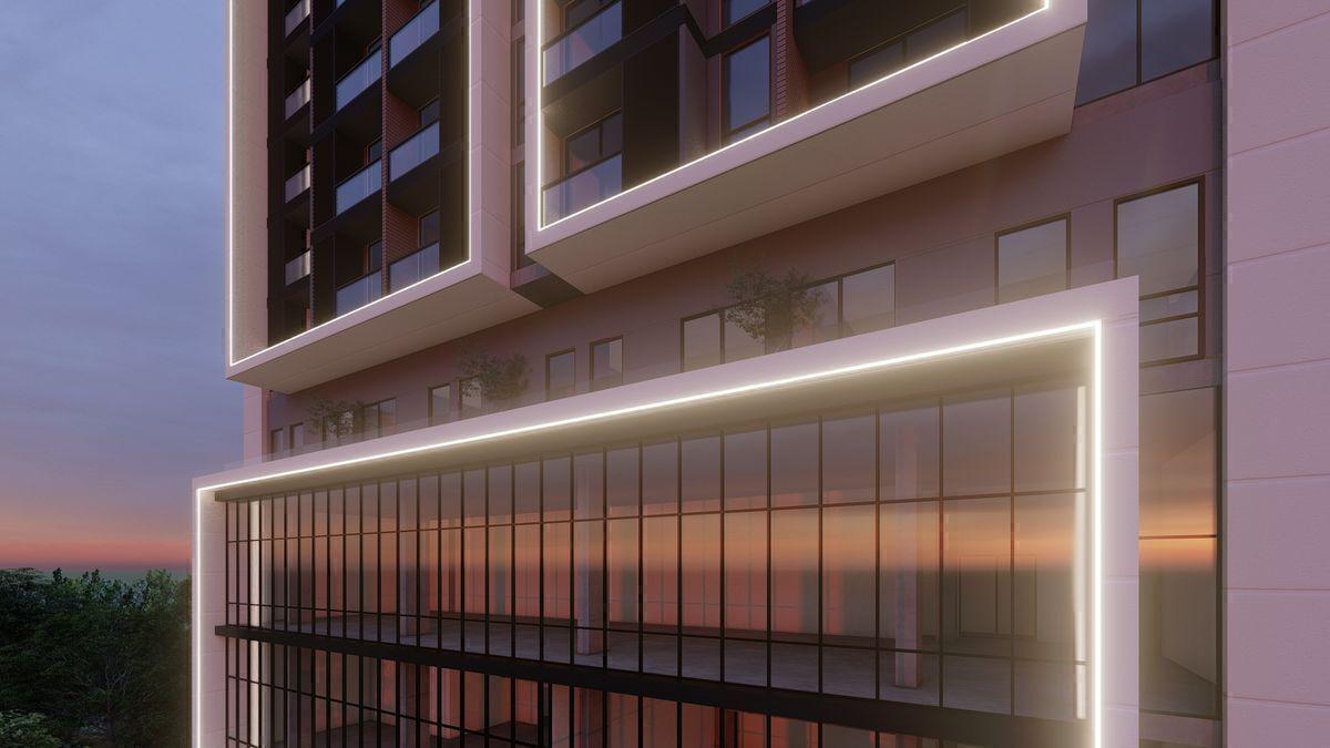 -O projeto consiste em dois blocos arquitetônicos, divididos em uma área comercial junto com outra de escritórios, e a segunda parte nos apartamentos residenciais.