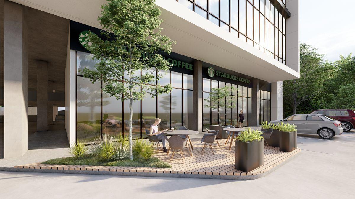 -O primeiro nível é composto por lojas comerciais para aluguel, que se beneficiarão por estar em contato com a avenida principal.