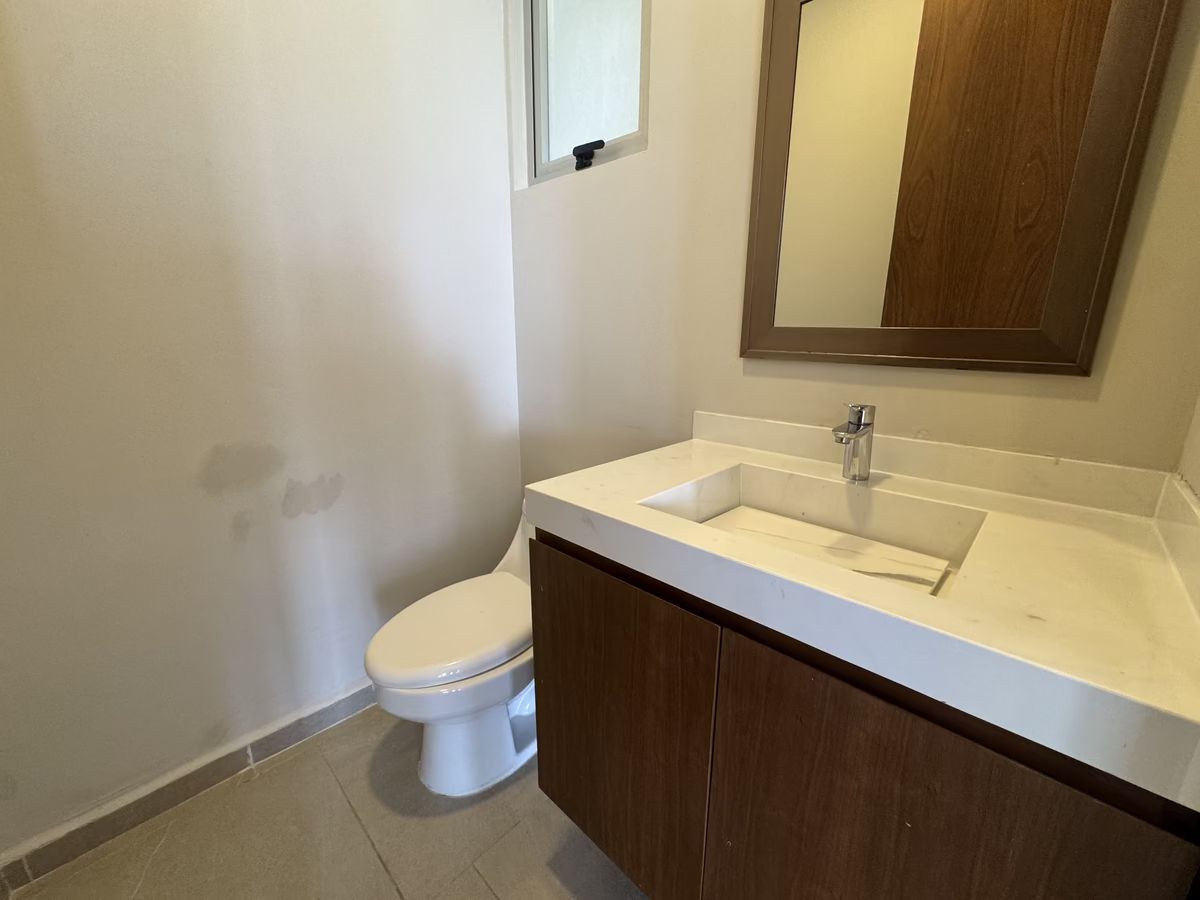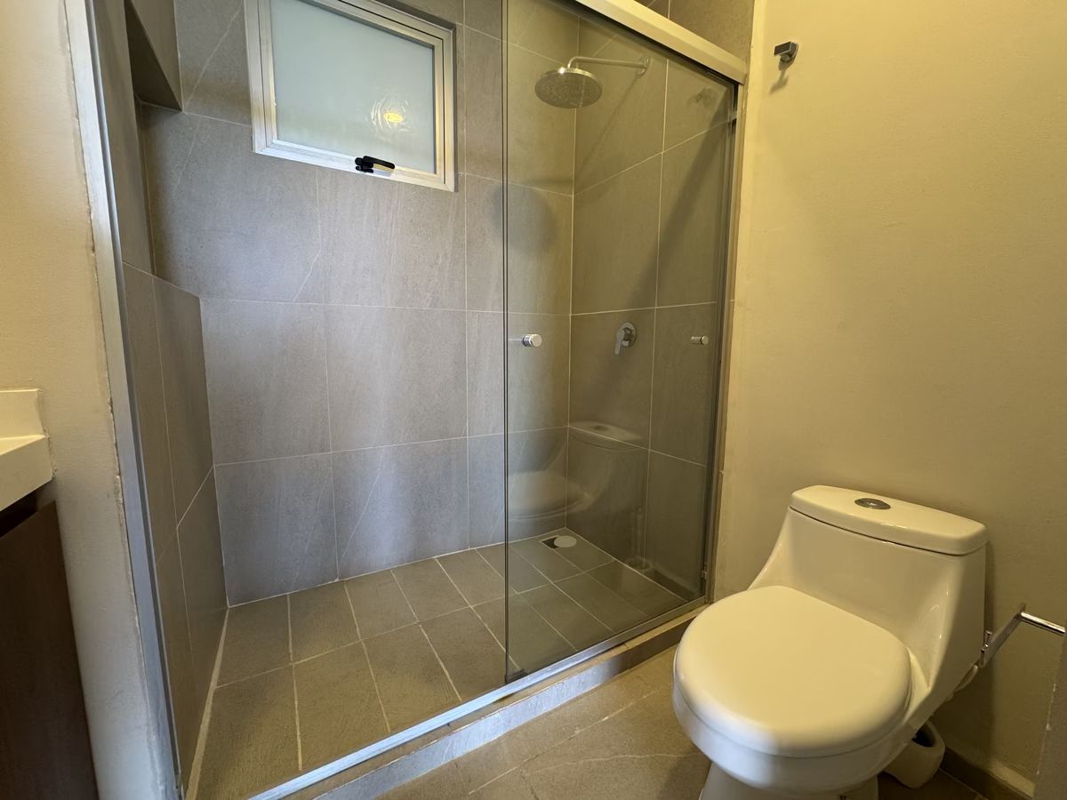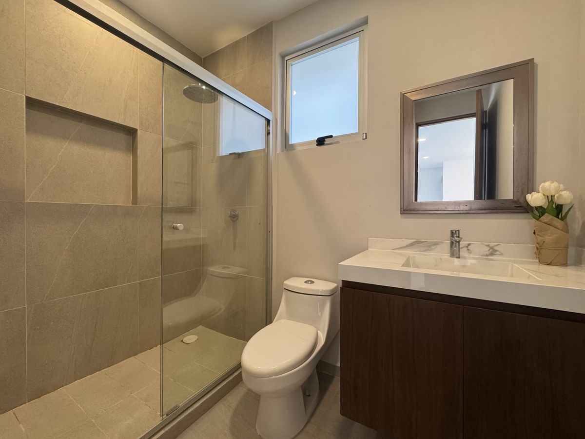 - Baños con pisos de porcelanato y cancelería de cristal fijo