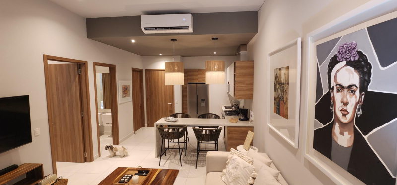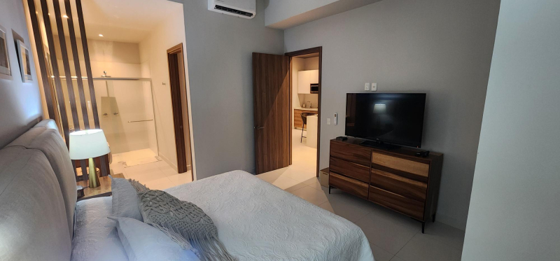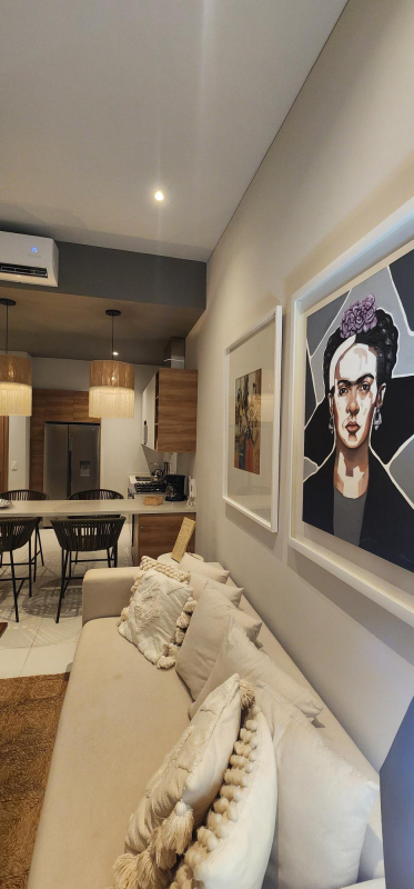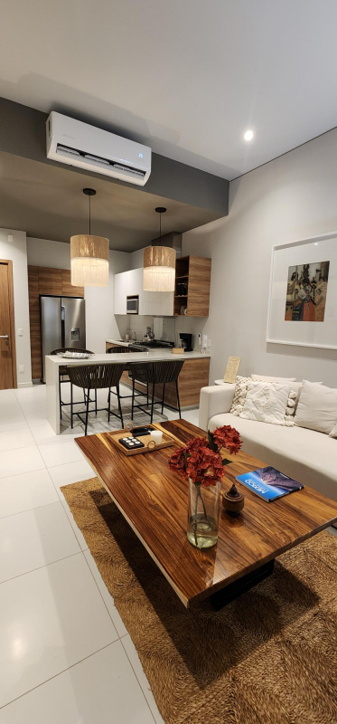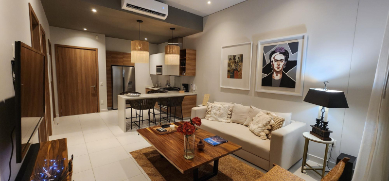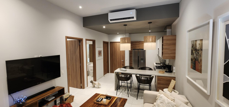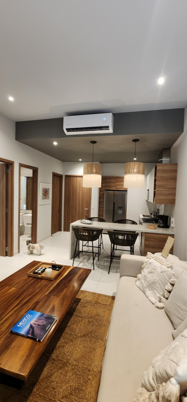 Lindo apartamento à venda, mobiliado e equipado, pronto para desfrutar, localizado em um dos desenvolvimentos de condomínio mais exclusivos de Nuevo Vallarta, Punto Novo, na área gastronômica plus (restaurante japonês YEO, Wine Corner, La Ola, La Dolce Vita, etc.), segurança 24/7, limpeza geral das áreas de estacionamento, corredores, elevador, escadas. O apartamento conta com uma ampla sala de estar com sofá-cama, mesa de centro, poltronas individuais, com ar-condicionado Inverter, tela de 55", cozinha integrada com bar de jantar com 4 bancos, refrigerador duplex com máquina de gelo e dispensador de água, micro-ondas, todos os utensílios domésticos, lavanderia com pia, lavadora e secadora Whirlpool, despensas amplas, terraço com 2 poltronas externas com excelentes vistas de Vallarta e da área do Tigre, um quarto muito espaçoso com cama king size, cabeceira estofada, mesas de cabeceira, lâmpadas, cômoda e closet, além de ar-condicionado inverter, tela de 55", banheiro de conceito aberto com área de pia com móvel de cômoda, divisórias de vidro temperado no chuveiro, depósito no subsolo e uma ampla vaga de estacionamento, tag de controle para acesso ao estacionamento e ao edifício, excelente administração, o desenvolvimento conta com rooftop com piscina infinita, área de ludoteca, academia, sala de reuniões e uma excelente terraço duplo com bar e pia, totalmente mobiliado com mesas, cadeiras e espreguiçadeiras. Vistas incríveis.Hermoso departamento en Venta, amueblado y equipado, listo para disfrutarlo, el cual se encuentra en uno de los desarrollos condominales mas exclusivos de Nuevo Vallarta, Punto Novo, en la zona gastronomica plus ( YEO restaurant japones, Wine Corner, La Ola, La Dolce Vita etc. ), vigilancia 24/7, limpieza general de area de estacionamientos, pasillos, elevador, escalera, el Departamento cuenta con amplia sala con sofá cama, mesa de centro, sillones individuales, con aire acondicionado Inverter, pantalla de 55", cocina integral con barra comedor con 4 bancos, refrigerador duplex con maquina de hielo y despachador de agua, microondas, todos los enseres domesticos, cuarto de lavado con tarja, centro de lavado wirlhpool, amplias despensas, terraza con 2 sillones para exterior con excelentes vistas a Vallarta y area del Tigre, una recamara muy amplia con cama king size, cabecera de tapizada en tela, buroes, lamparas, cajonera y closet, ademas aire acondicionado inverter, pantalla de 55", baño de concepto abierto con área de lavabo con mueble cajonera, canceles de cristal templado en regadera, bodega en sotano y un amplio cajón de estacionamiento, tag control para acceso a estacionamiento y edificio, excelente administración, el desarrollo cuenta con roof top con alberca infinity, area de ludoteca, gym, sala de juntas y una excelente terraza doble con barra y tarja, totalmente amueblada con mesas, sillas, y camastros. vistas increibles.