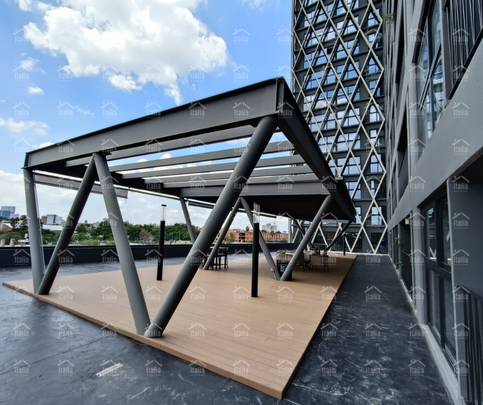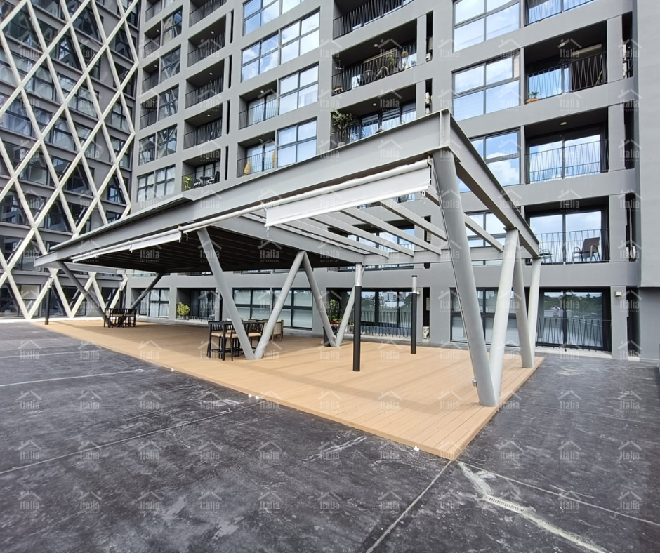 O conjunto conta com uma área de amenidades na parte de trás, com uma piscina que terá um sistema de aquecimento por meio de uma bomba de calor, unida por uma área de solário molhado. Neste espaço também há uma área de terraço de leitura, banheiros, vestiários para homens e mulheres, pista de jogging, parquinhos infantis, aparelhos de exercício ao ar livre e sala coberta.