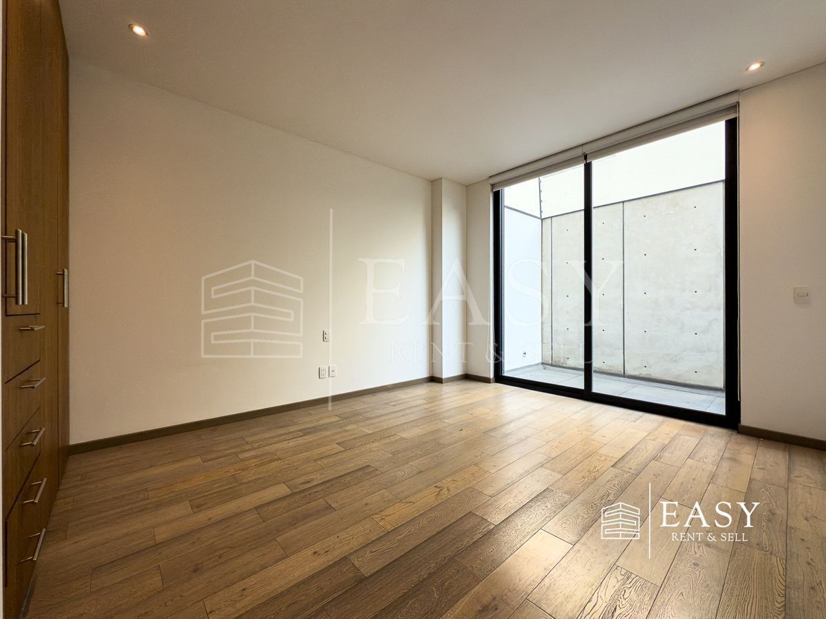 Cuenta con una amplia sala-comedor con salida a un balcón, cocina moderna equipada y un práctico baño de visitas. Tiene 2 recámaras con techos altos y excelentes clósets; ambas con acceso a terrazas privadas.