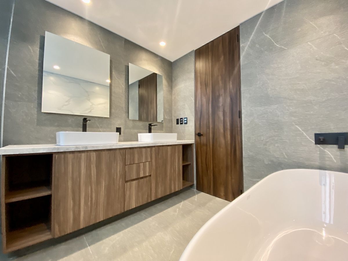 Acabados de lujo: Disfruta de pisos de madera importadas en todas las habitaciones, brindando una sofisticada sensación de confort y pisos de piedra natural en la estancia.