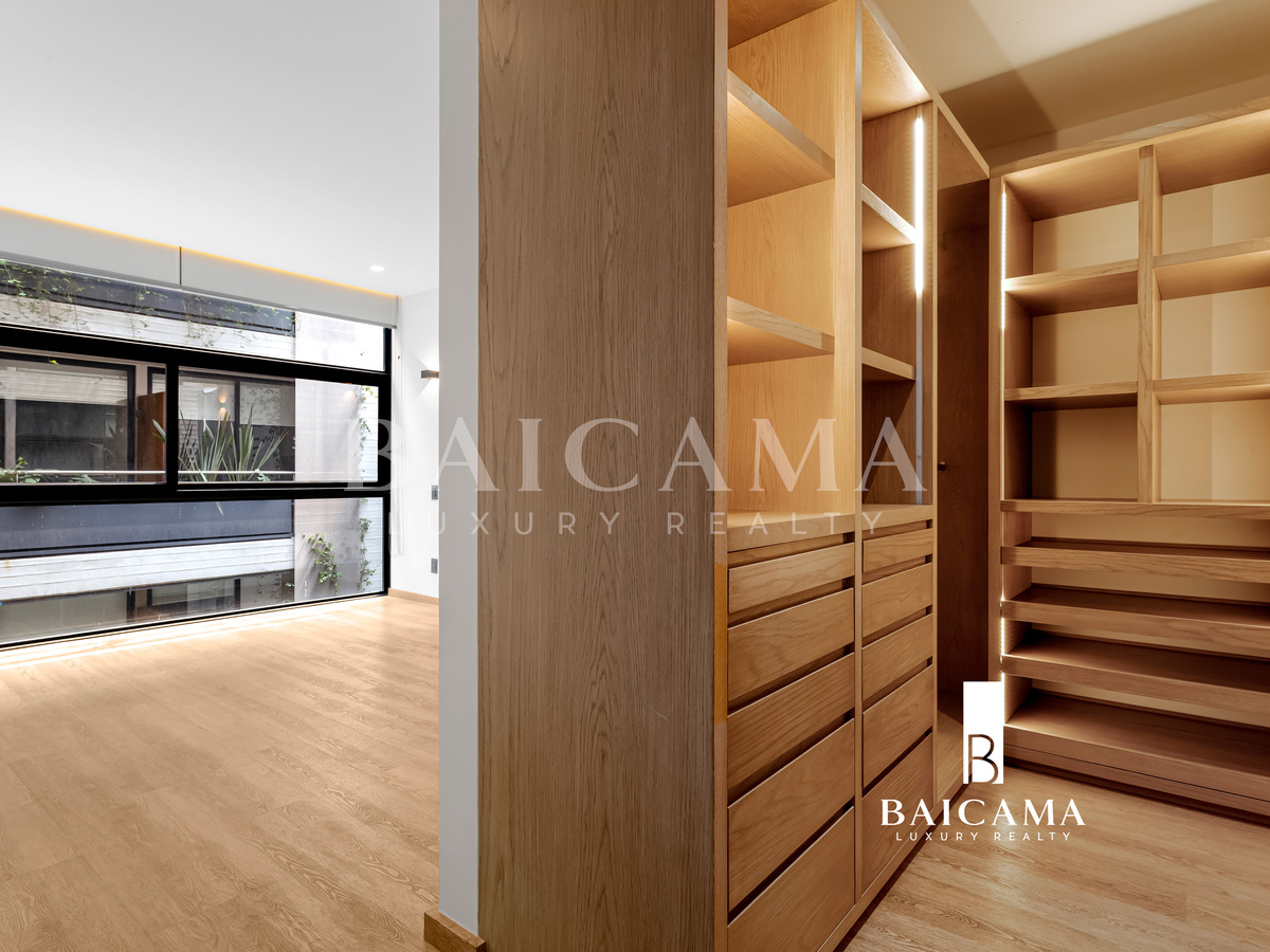Com uma das melhores localizações em Polanco, entre o Parque Lincoln e Campos Elíseos, este apartamento de 240 m² está distribuído em dois andares, conseguindo uma separação entre as áreas sociais e a área familiar.