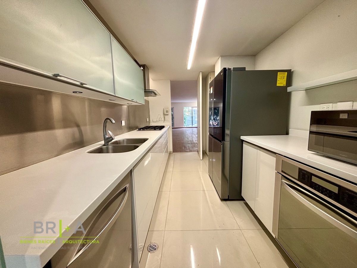 Apartamento bonito e moderno à venda na primeira seção de Polanco, construído em 2013 no Meridiano Residence, andar baixo com terraço, possui 2 quartos, 2 banheiros completos com divisórias de vidro temperado, cozinha equipada com refrigerador novo, micro-ondas, lava-louças, forno e fogão, espaço para sala e sala de jantar, banheiro de visitas, lavanderia com lavadora e secadora e banheiro completo de serviço.
