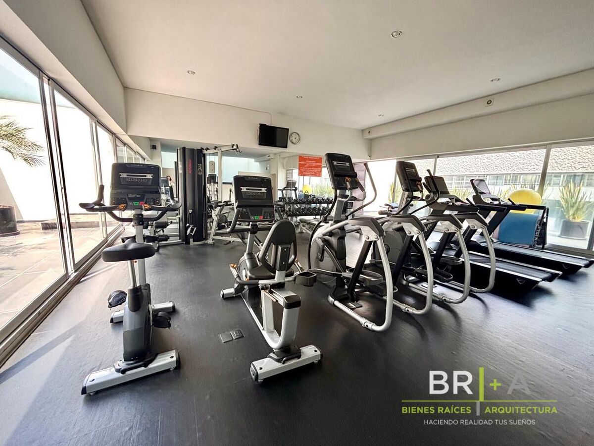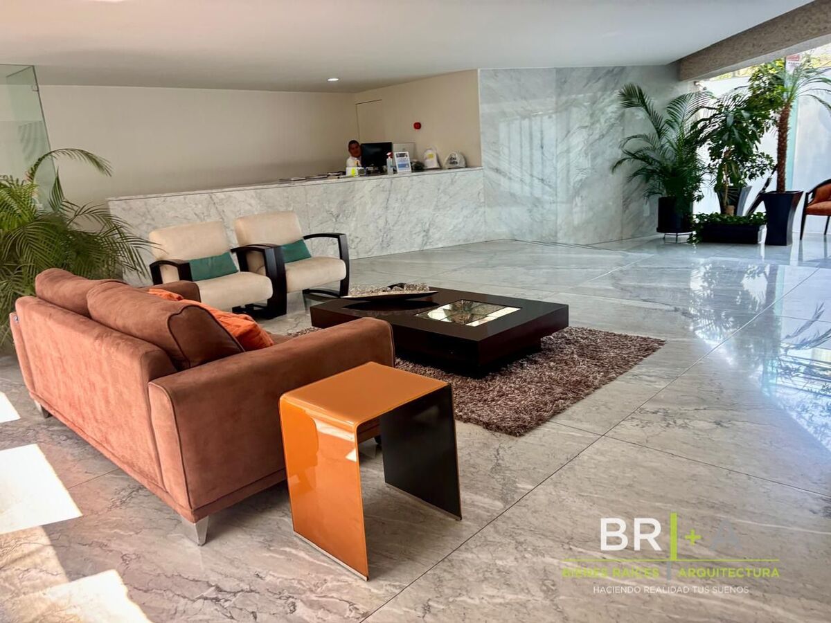 Completas áreas comunes como salón de eventos con cocina y baños, alberca y jacuzzi cubiertos con baños, terrazas y roof garden, gimnasio equipado, lobby con recepción seguridad las 24 horas y circuito cerrado, 2 lugares de estacionamiento elevador de carga y servicio + 2 elevadores principales.