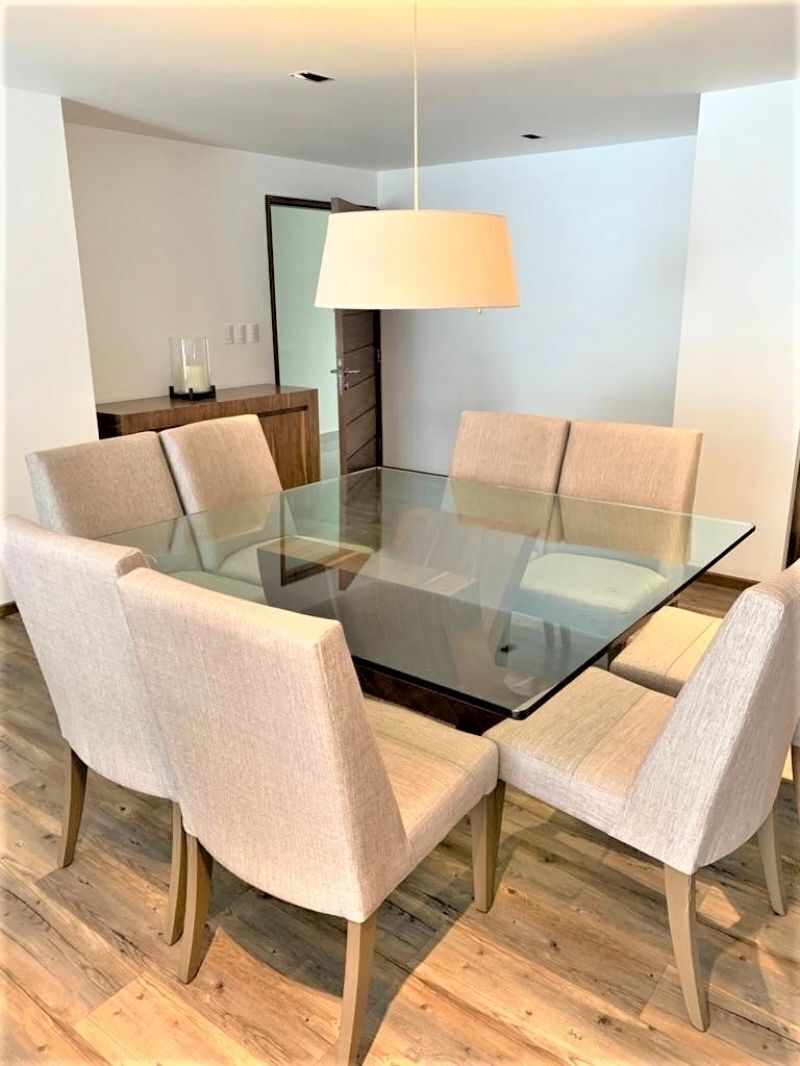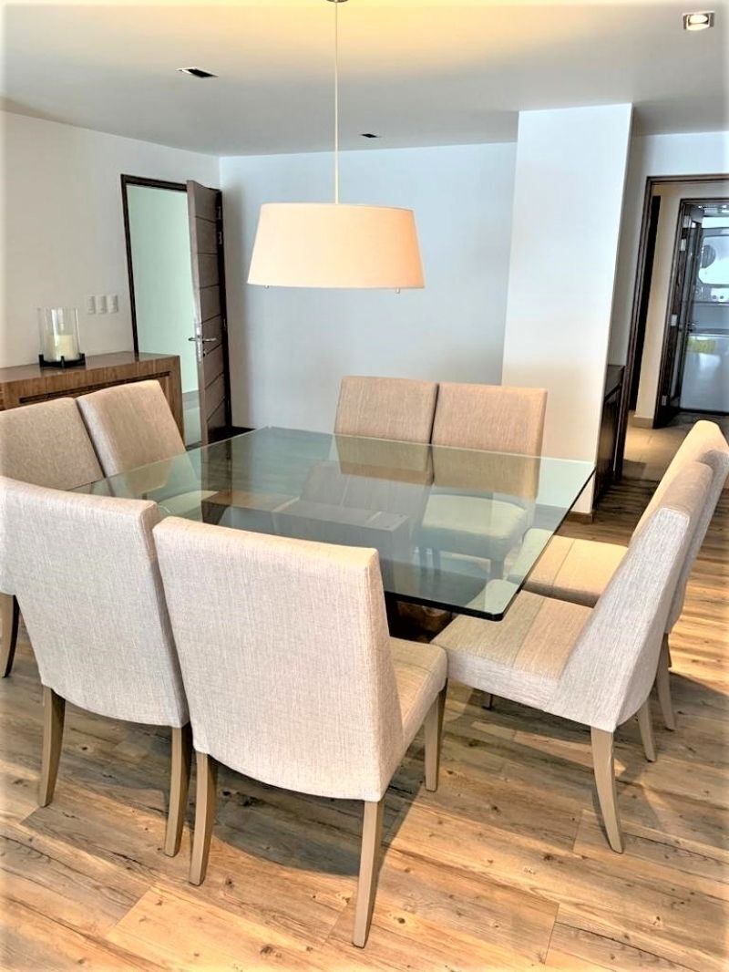 Excelentes acabados del departamento, pisos de madera, cocina integral con lavavajillas y todos los aparatos electrónicos, la recamara principal es muy espaciosa con un buen vestidor; tiene área de lavado , cuarto de servicio ; es muy acogedor, tiene salida peatonal a la calle de Lamartine a una cuadra y media está un Supermercado Wall Mart ,muy buena ubicación.