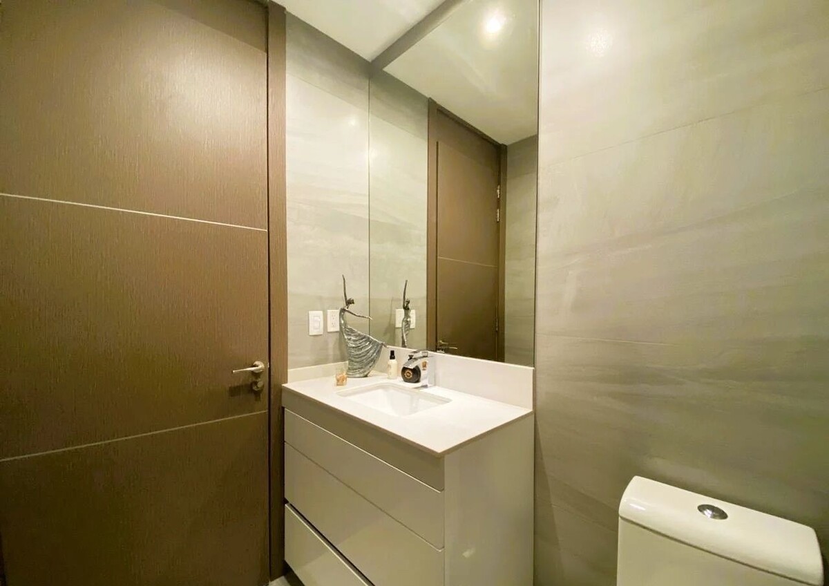 SUÍTE MASTER COM BANHEIRO DUPLEX E AMPLA CLOSET EQUIPADA.