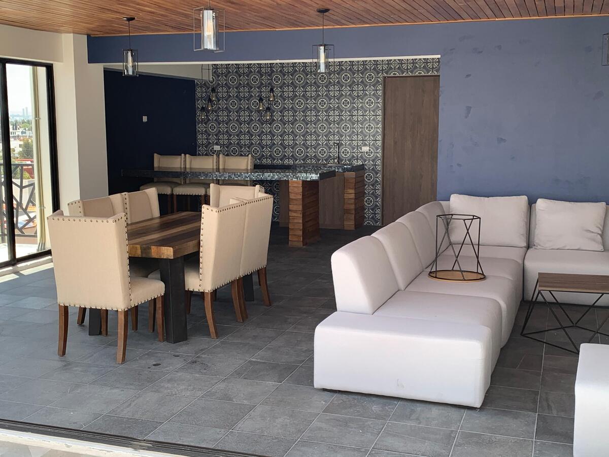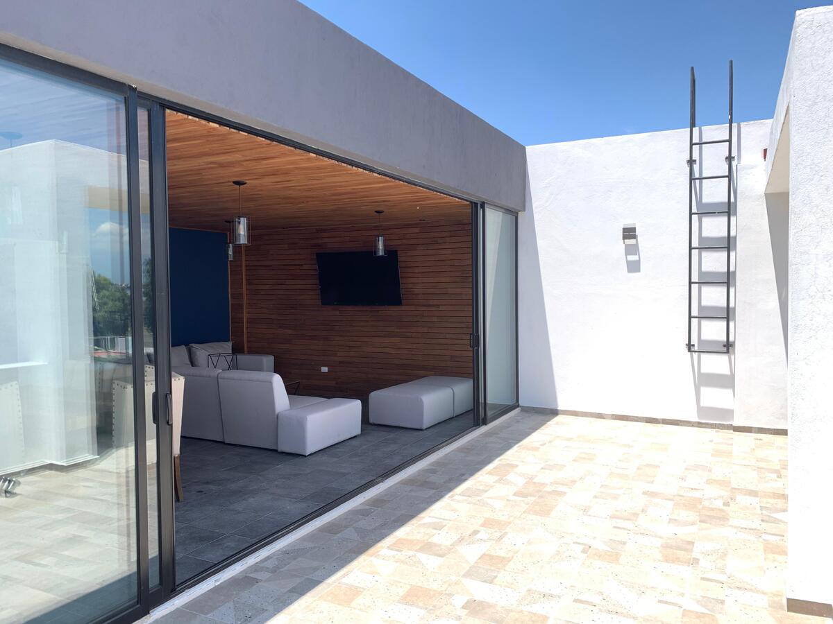 Terraza con vista a los volcanes y a la pirámide de Cholula