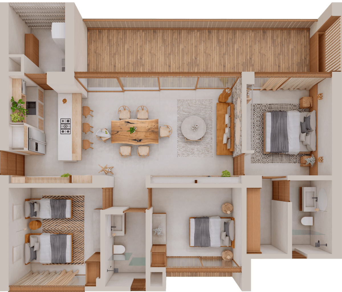 El departamento se encuentra dentro de Kóokay Hábitat; un proyecto de 9 villas y una exclusiva torre de deptos, rodeado por la majestuosidad de la reserva ecológica y con vistas privilegiadas a la costa maya.