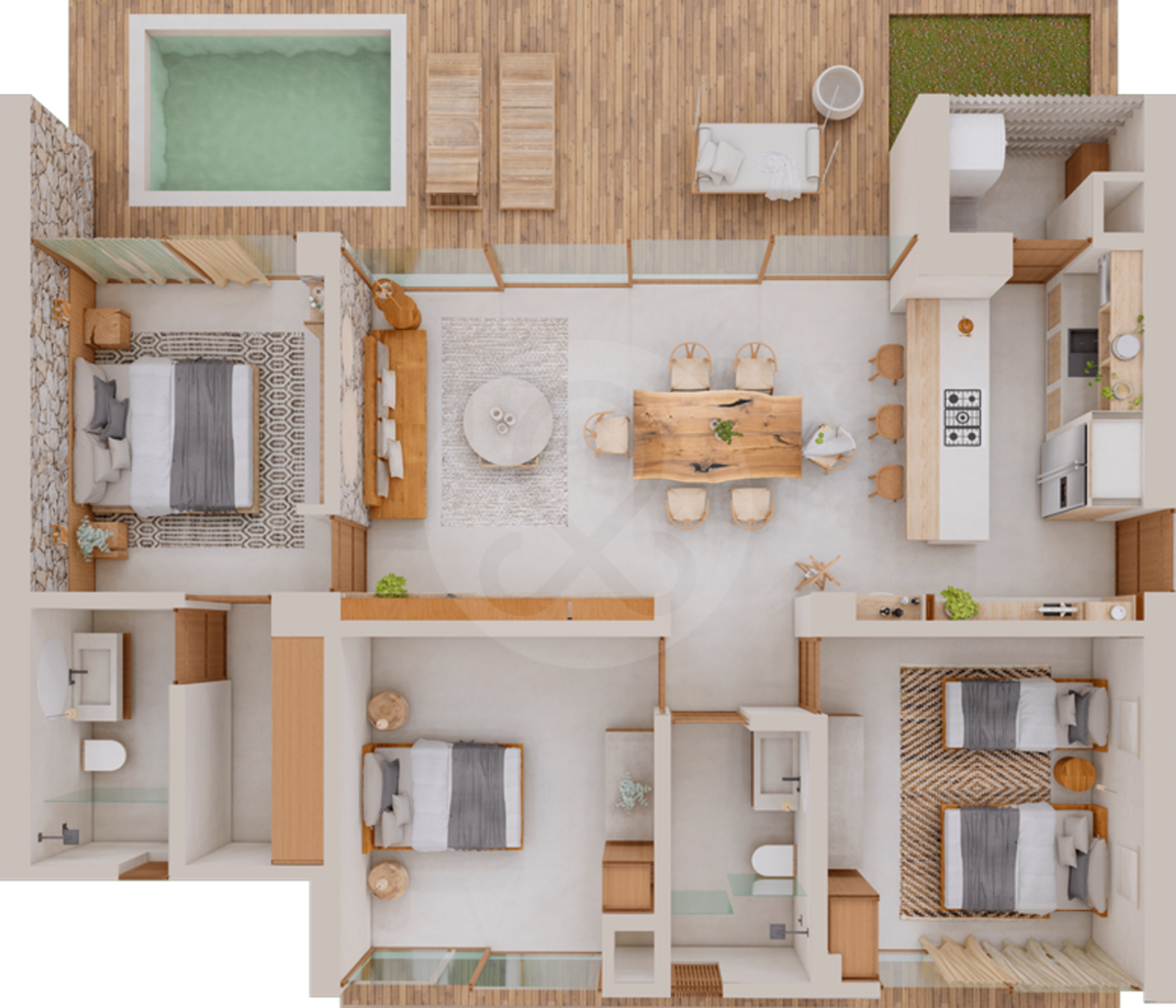 El departamento se encuentra dentro de Kóokay Hábitat; un proyecto de 9 villas y una exclusiva torre de deptos, rodeado por la majestuosidad de la reserva ecológica y con vistas privilegiadas a la costa maya.
