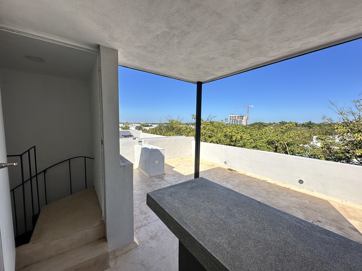 El roof privado es uno de los puntos fuertes de esta propiedad. Con vistas impresionantes, es el lugar perfecto para relajarte al final del día y disfrutar las noches de Mérida.