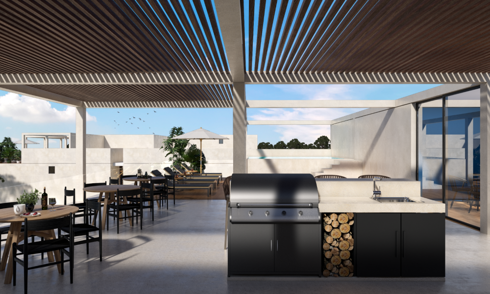 Amenidades: Guest Room, Rooftop con piscina, Asador, Área recreativa, Cancha de pádel, Área de comensales, Área de yoga, Área de box, Área de calistenia, Áreade pesas y Petfriendly