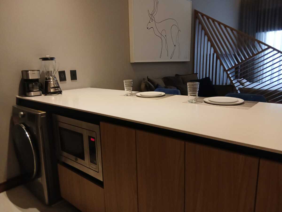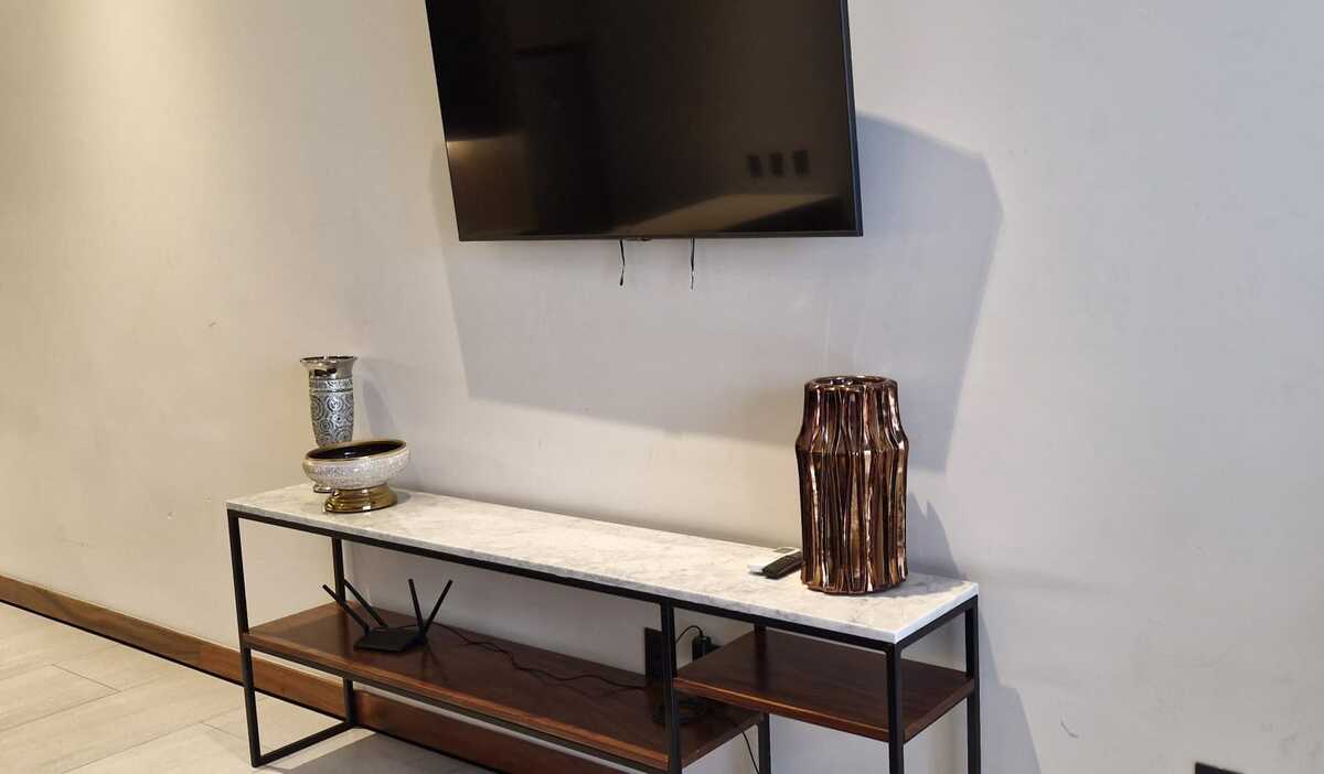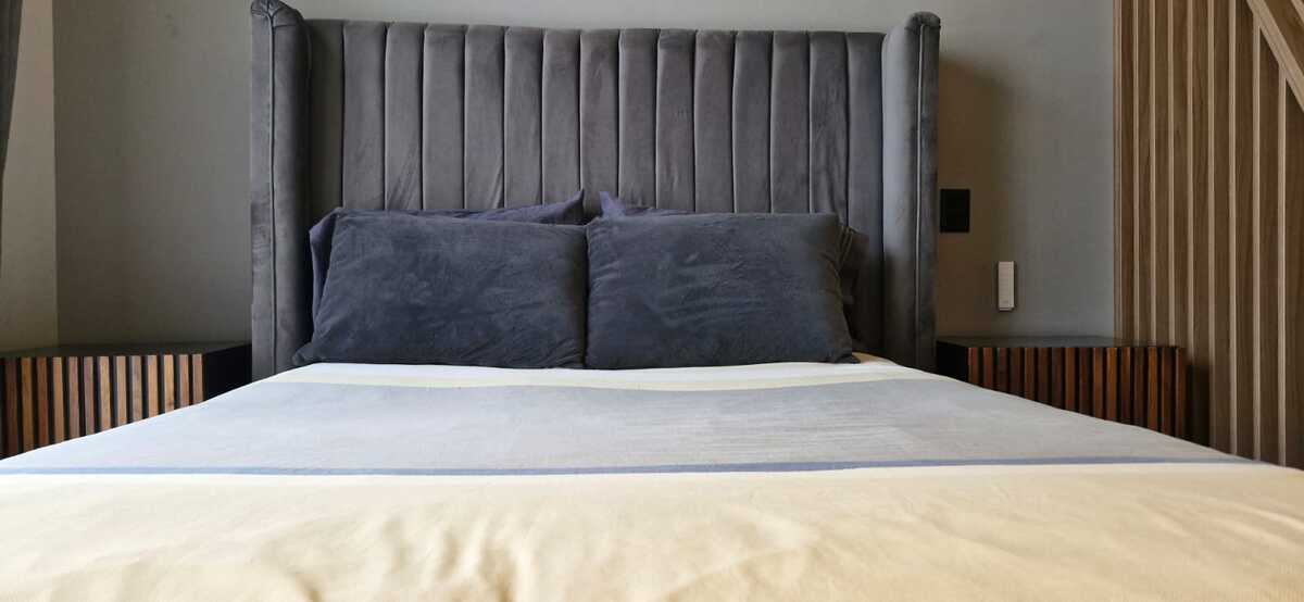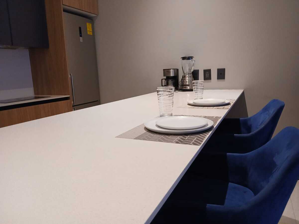 Totalmente amueblado y equipado: aire acondicionado, clóset amplio, sofá, escritorio, cama matrimonial, refrigerador, microondas, televisión, vajilla, cortinas y persianas black out.