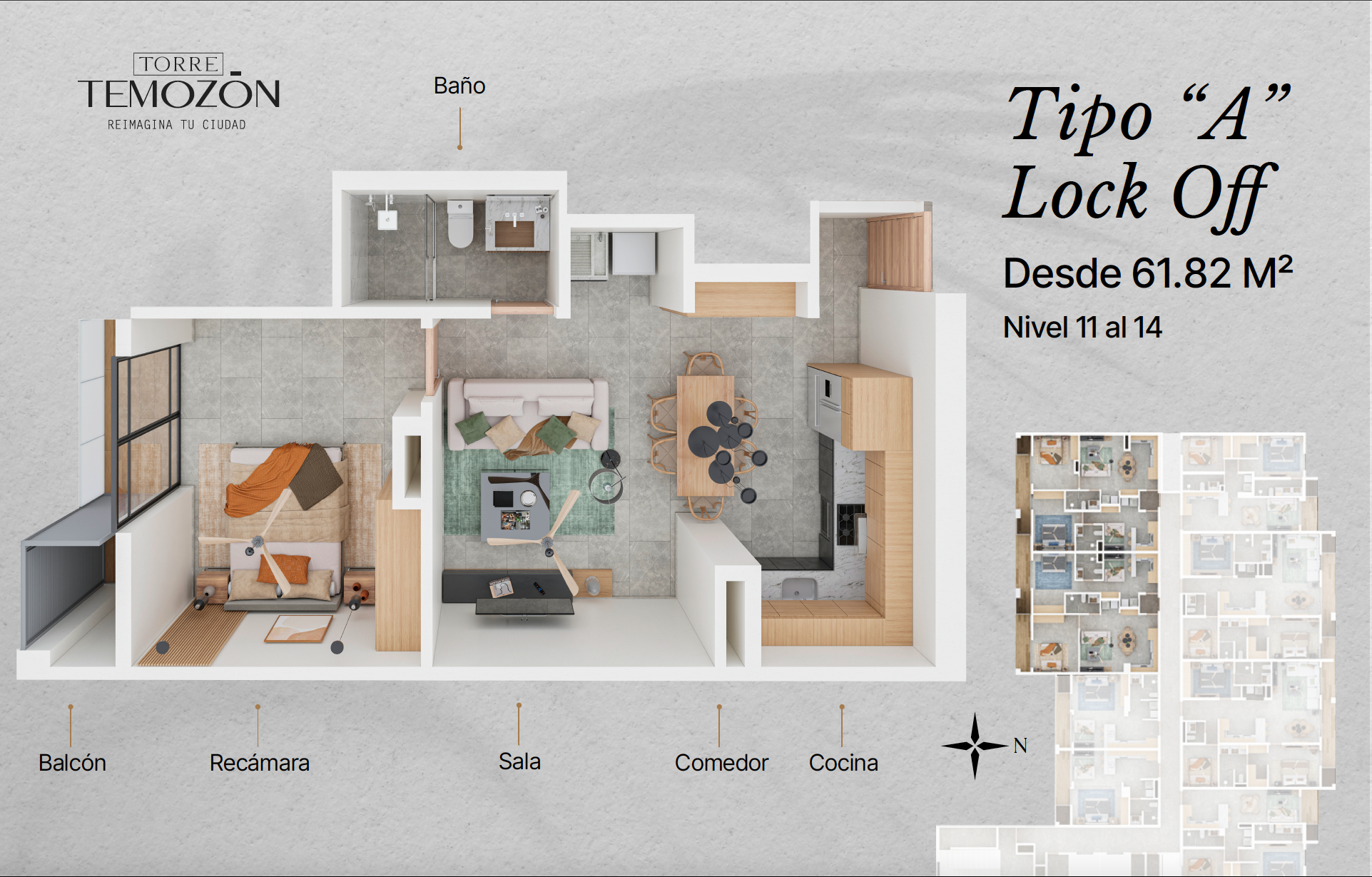 Departamento à VENDA na Torre Temozón (Tipo LO-A) ao norte de Mérida YucatánDepartamento en VENTA en Torre Temozón (Tipo LO-A) al norte de Mérida Yucatán