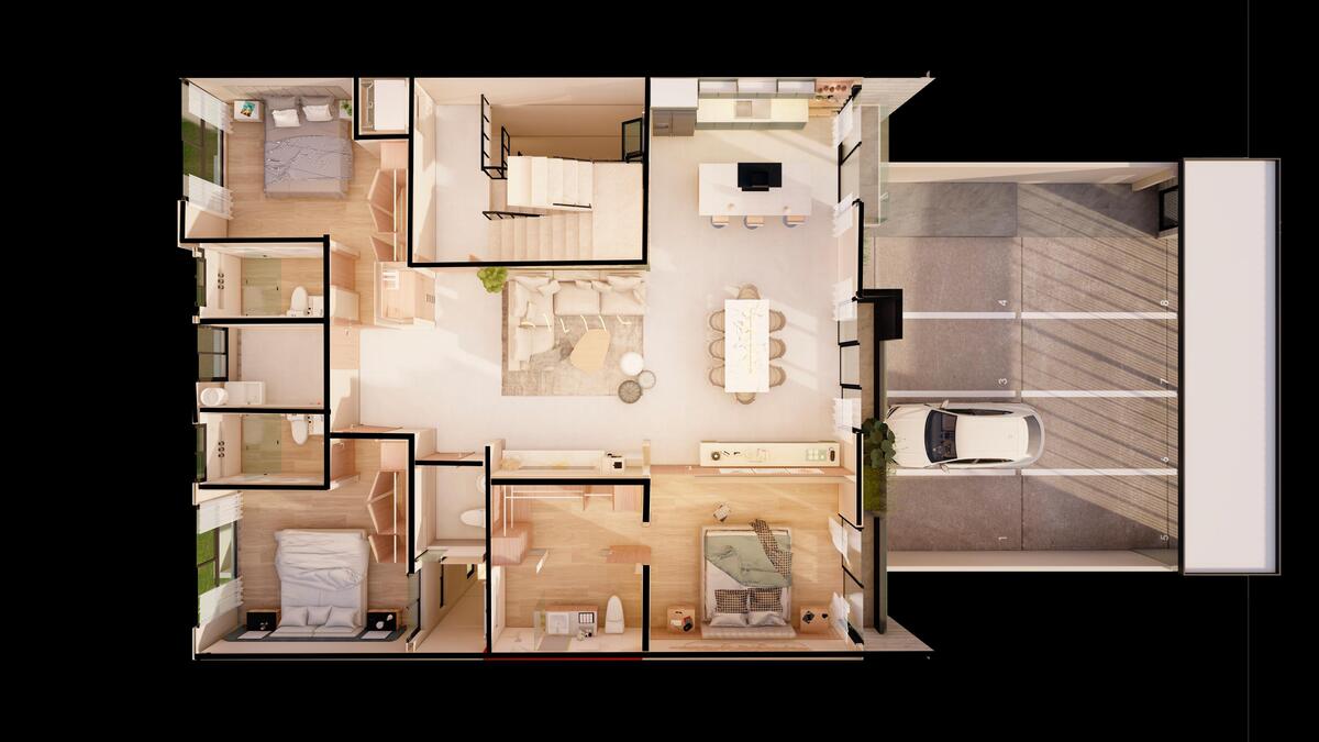 * Patio posterior, sólo aplica para el departamento de planta baja.