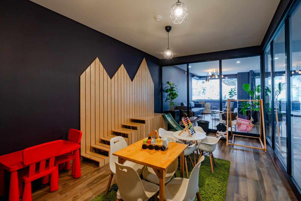 caseta de seguridad 24/7, áreas comunes techadas, terrazas para reuniones, asadores, fogatero, área exterior para niños con juegos, área pet friendly, gimnasio completamente equipado, salón social para eventos y bar para residentes, creando un entorno moderno, seguro y lleno de opciones para disfrutar cada día.