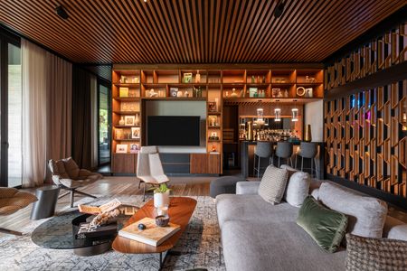 Um terceiro andar com uma sala de família tipo sala de jogos e uma impressionante varanda de mais de 200 m2 com jacuzzi e banheiro completo.