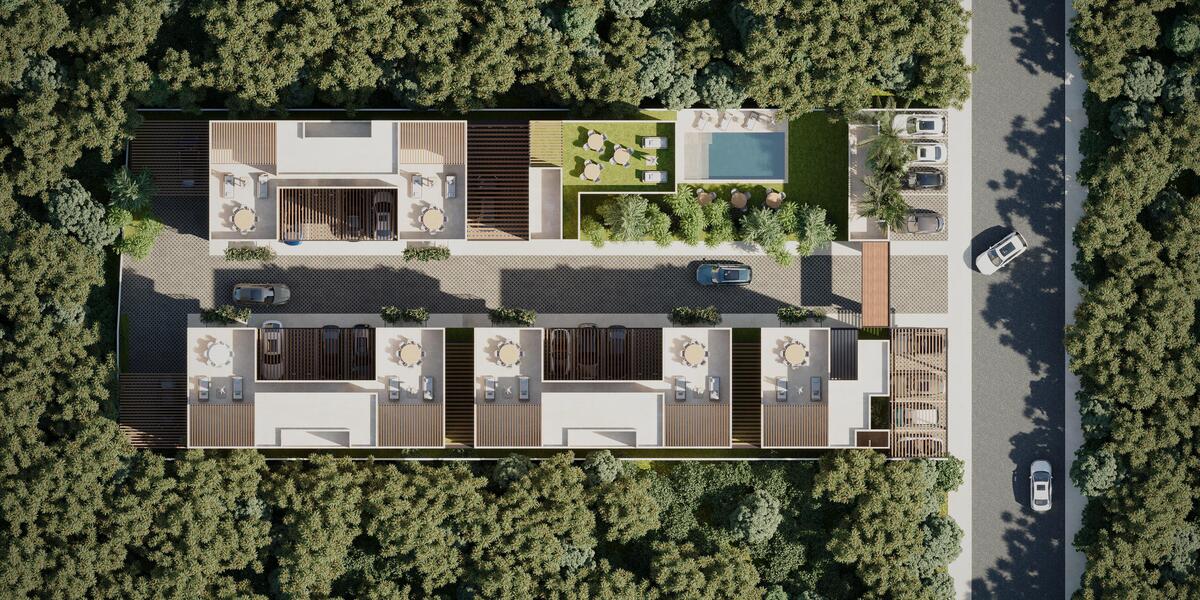 PROJETO RESIDENCIAL DE 21 APARTAMENTOS DE 1 E 2 QUARTOS DISTRIBUÍDOS EM 7 TORRES DE 3 NÍVEIS.