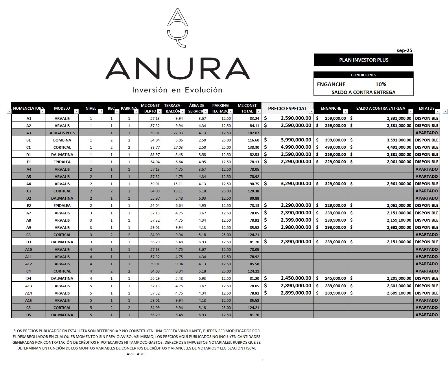 -El precio no incluye gastos notariales, avalúo, impuestos de adquisición, ni comisiones bancarias.