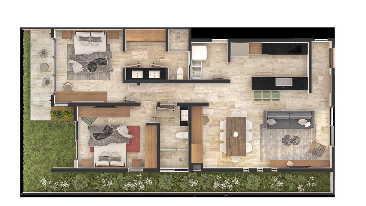 -Departamento A3 Edificio A Planta baja-Modelo Pent garden