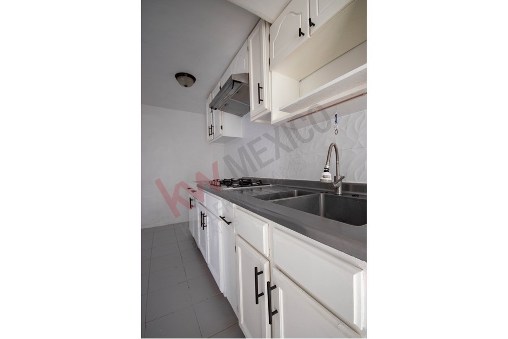 Cuenta con cocina integral con gabinetes blancos, que integra campana, una parrilla de acero inoxidable, todo en buen estado de conservación, área de lavado.