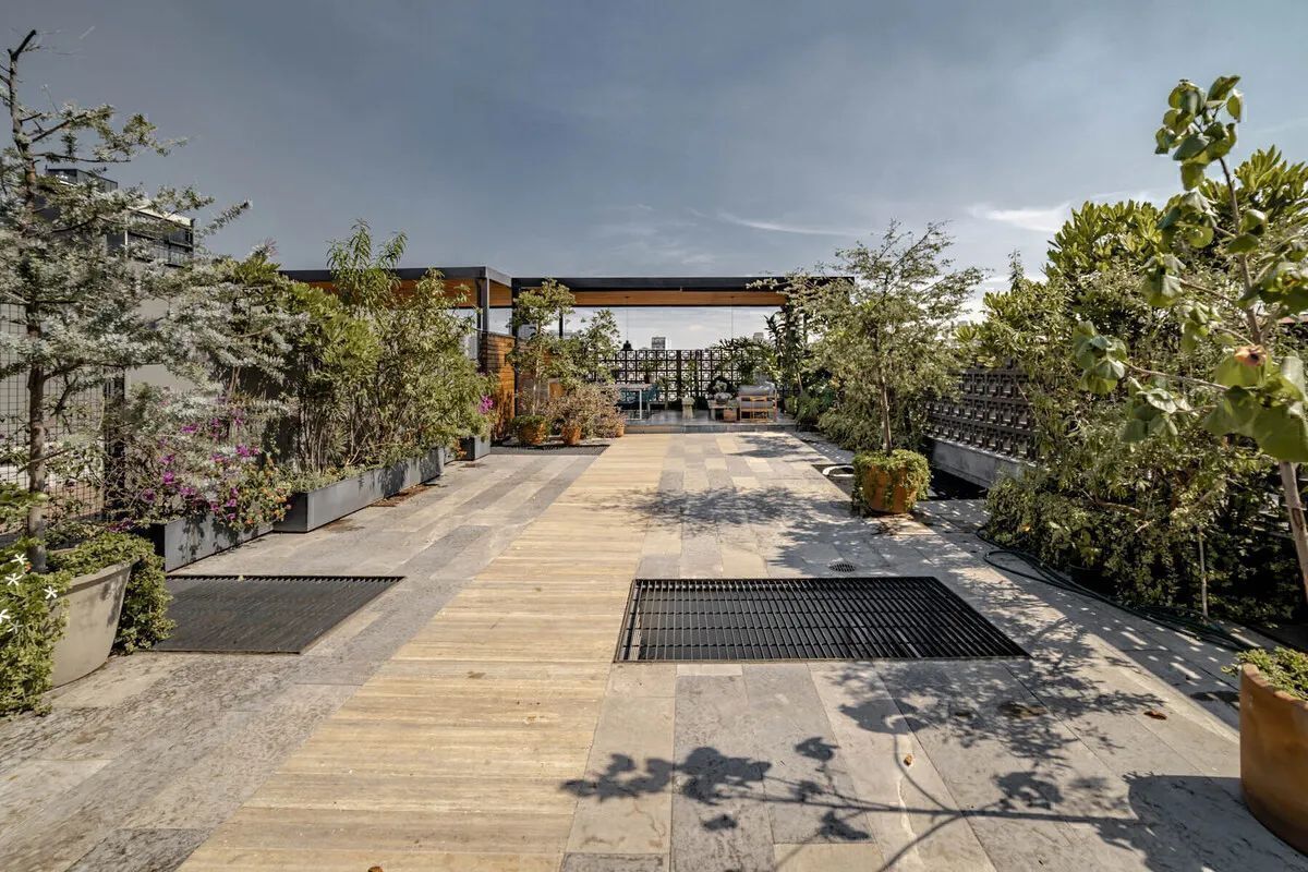 Distribuido en tres niveles, el departamento consta de 301 m2 más 47 m2 terraza y 140 m2 del roof garden privado.