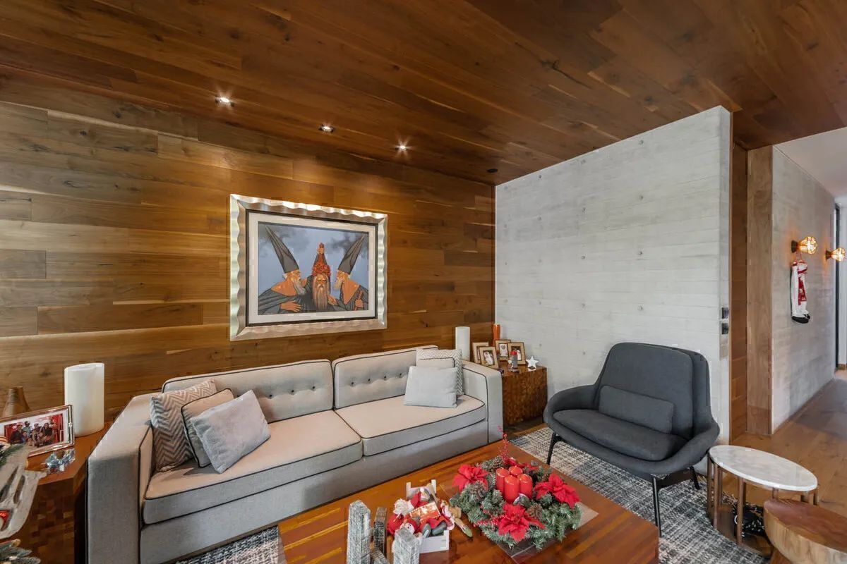 El departamento consta de gran estancia, la cual está cubierta con duela de madera importada de piso a techo, además de tener acceso a la terraza. Cocina integral equipada para guardar cualquier utensilio culinario, baño de servicio, family room, cuatro recámaras cada una con baño completo y vestidor, terraza y roof garden privado.