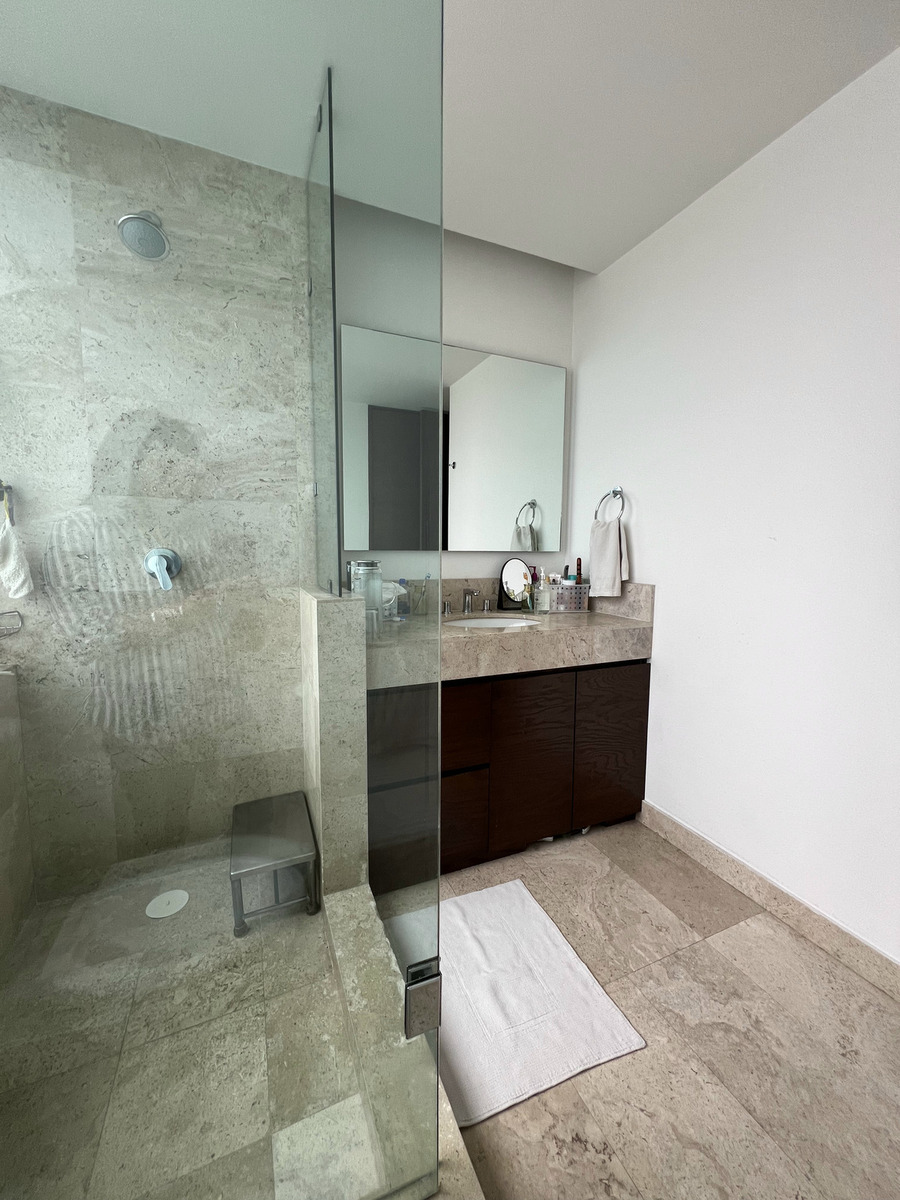 • Recámara principal con vestidor y baño completo con muebles bajo lavabo y closet de blancos