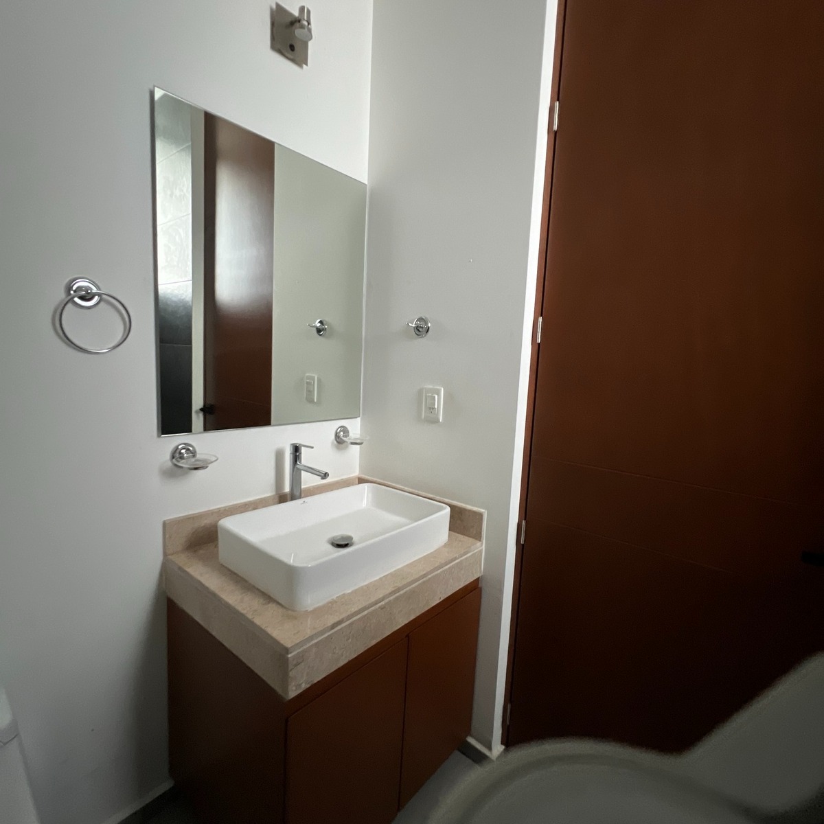Carpintería en concina, meseta de granito en cocina, closet semivestido, meseta de mármol en baños, calentador eléctrico, cancel de vidrio templado en baño