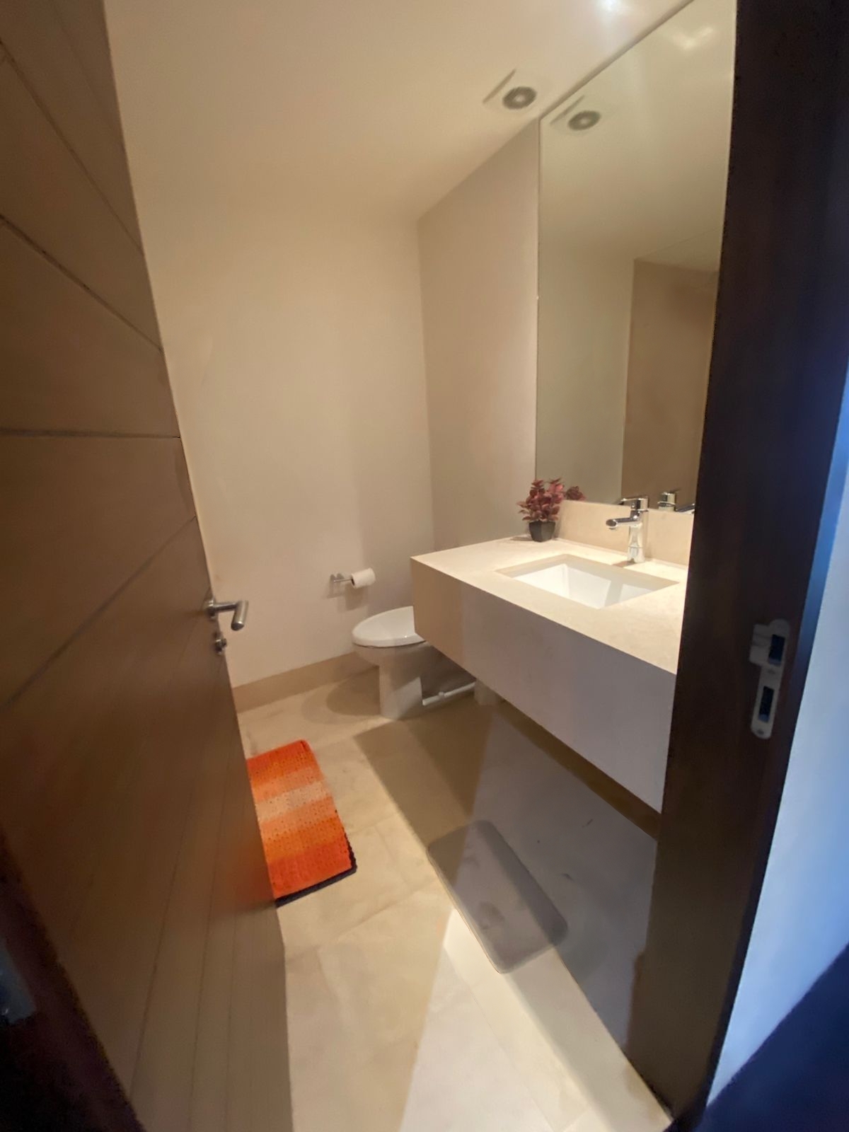 Ao entrar, você encontrará um elegante hall, um lavabo para visitas, uma confortável sala de família, cozinha integrada aberta com balcão, área de lavanderia, 2 quartos com banheiro completo: o principal com closet e pia dupla, e o secundário com armário. Além disso, inclui um armário de roupas de cama e 2 vagas de estacionamento.