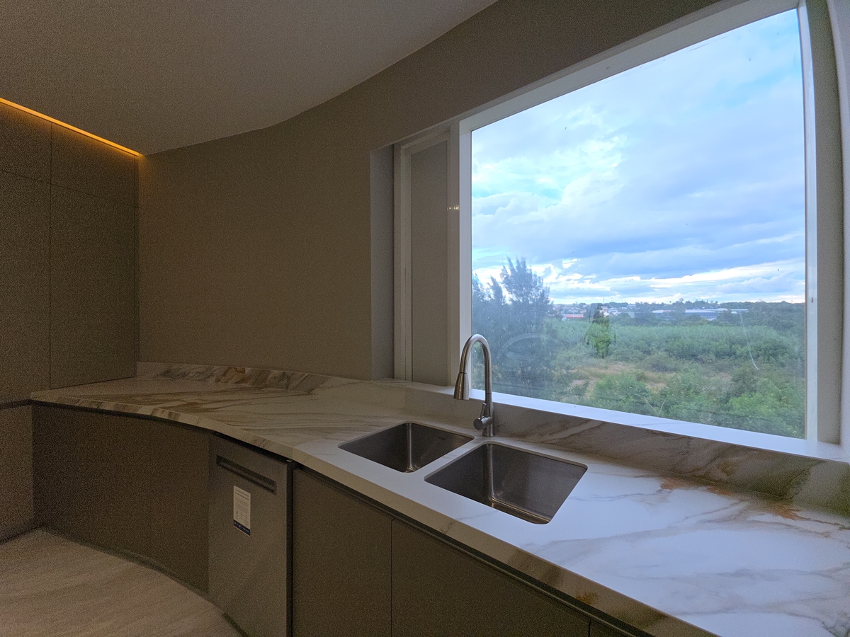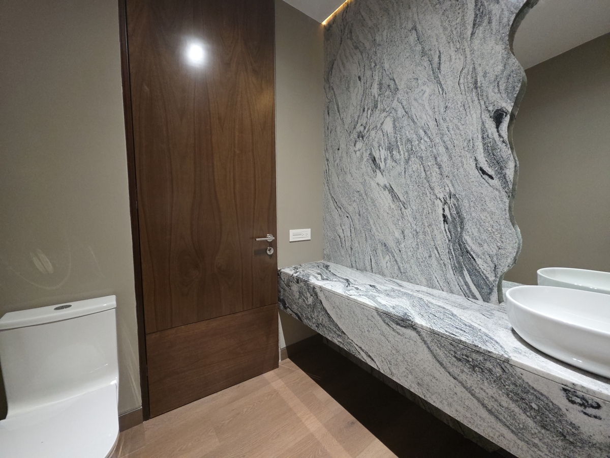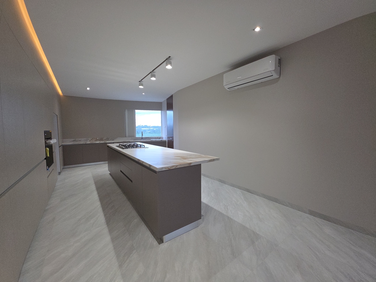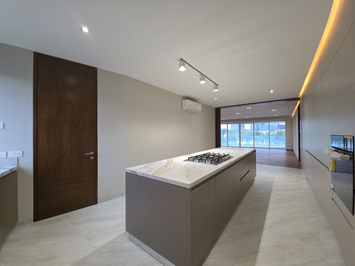 O interior é distribuído em uma espaçosa sala e sala de jantar, ideais para receber visitas. A cozinha integrada está equipada com tudo o que você precisa. Tem 3 quartos, cada um com closet, e 4 banheiros completos mais 1 lavabo. Além disso, conta com quarto de serviço.