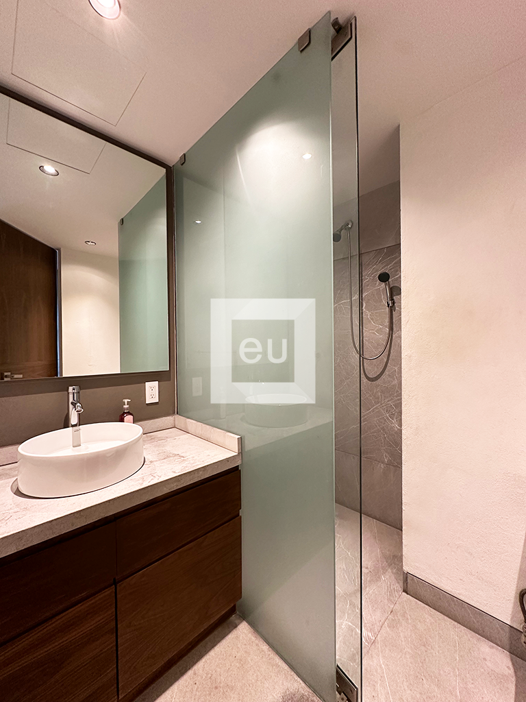 Departamento en proyecto de arquitectura bastante iluminado y ventilado en piso cuatro. Está distribuido en un sólo nivel, cuenta con una amplia cocina integral con cubierta de granito abierta al área social donde se encuentra una terraza techada con jardineras y vistas verdes, medio baño de visitas y área de lavado, el pasillo hacia atrás del departamento lleva a una recámara principal con closet, balcón y baño de doble lavamanos, a lado se encuentra una recámara secundaria de muy buen tamaño que comparte balcón y baño completo. El edificio es de 8 pisos, cuenta con elevador y vigilancia 24 horas.