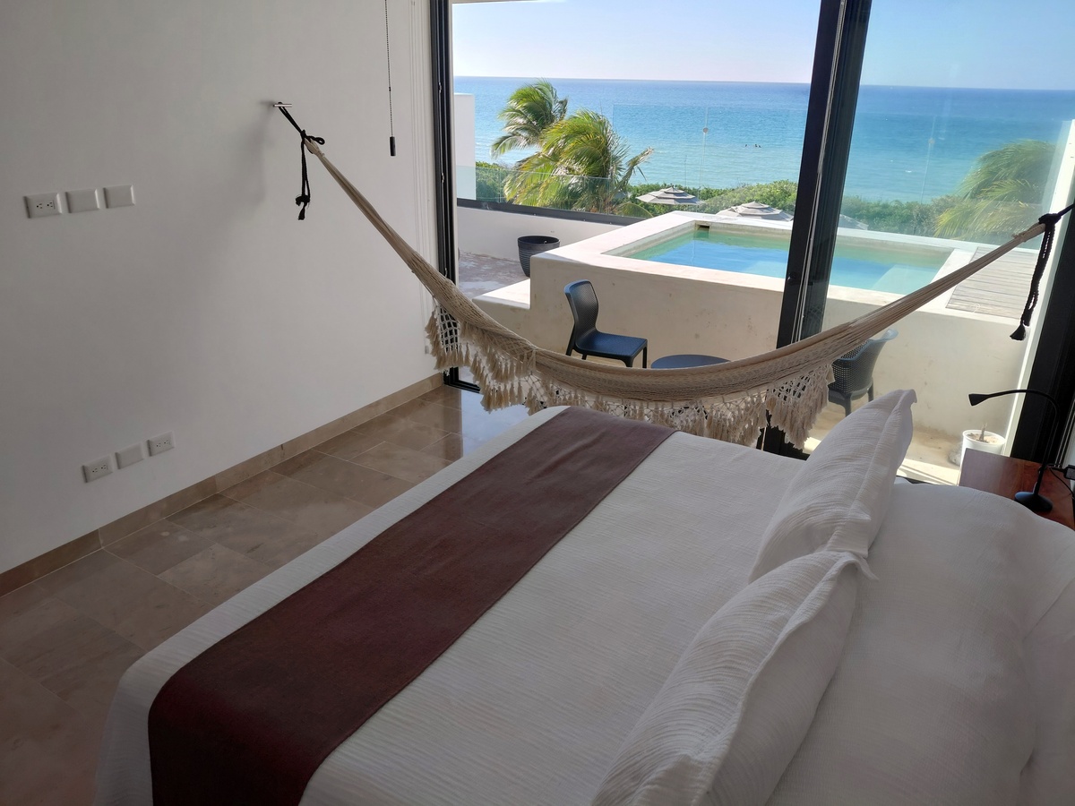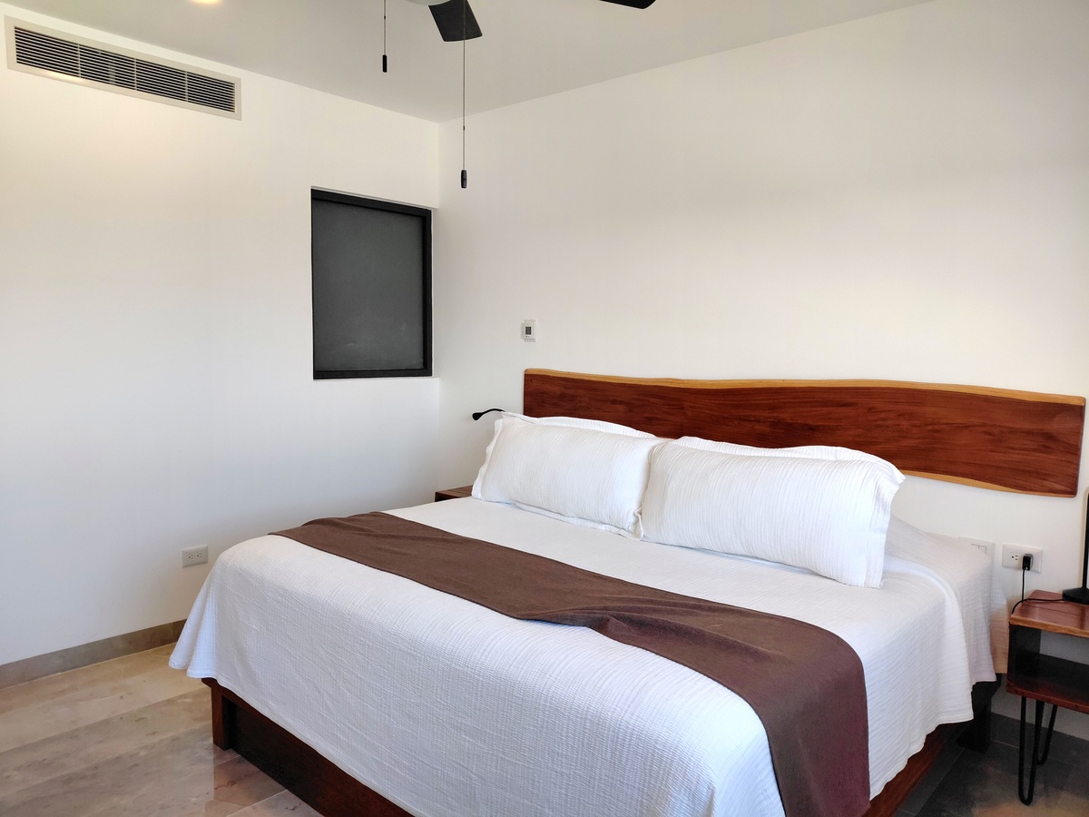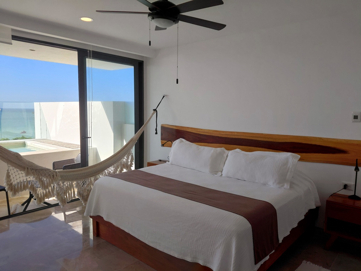 La primera y más importante recámara cuenta con vista a la alberca privada que a la vez cuenta con una impresionante vista al mar. Un baño totalmente completo y equipado. Además, ya incluye todos los muebles que se ven en las fotos.