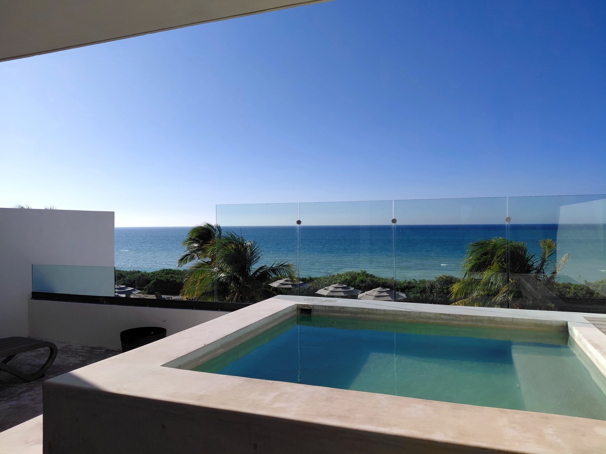 Además algo especial de este inmueble es el gran balcón que tiene, con una alberca privada además de las amenidades descritas anteriormente. Precioso balcón para relajarte mientras ves el atardecer con tu familia.